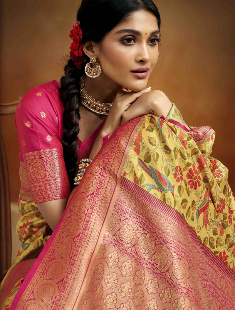 • | Saree | : | Color- Yellow / Fabric- Silk Blend |