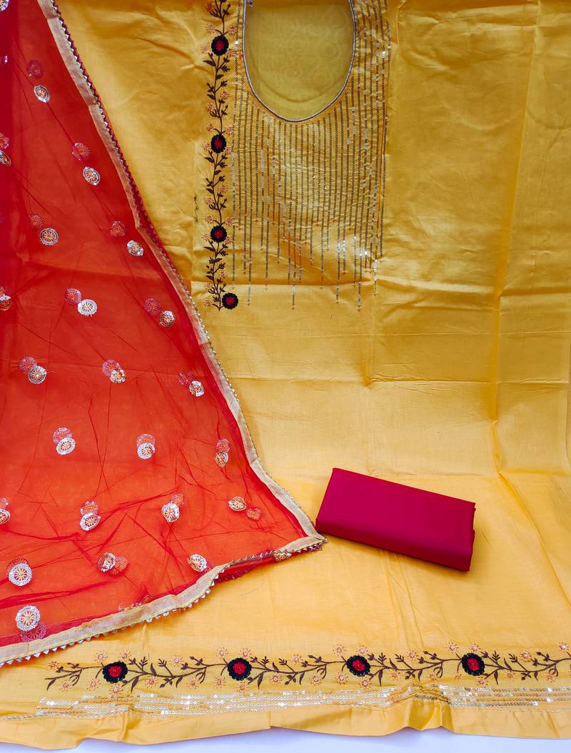 | Product Description | Kimisha Presents Beautifully Designed & Latest In Trends Women's Ethnic Glace Cotton Unstitched Straight Suit. It Is Available In Free Size And Can Be Stitched To Suit Your Measurements. It Is Alterable Up To Chest Size Of 46, Comes With Net Fabric And Sequence Embroidered Work Dupatta And Plain Cotton Un Stitched Bottom. This Dress Would Add Elegance To Your Look. Wear It At Any Occasion By Pairing It With Matching Ethnic Jewelary Like Ethnic Jumkas And Ethnic Footwear Like Mojaris And Juties. |