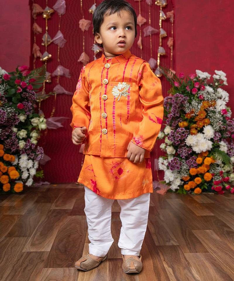 | Product Name | Orange Embroidered Satin Nehru Jacket Set | |