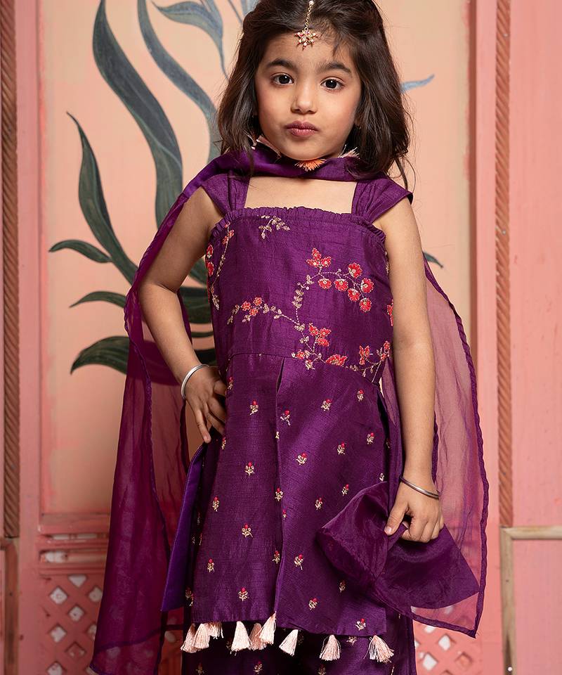 Purple embroidered silk kurta set
