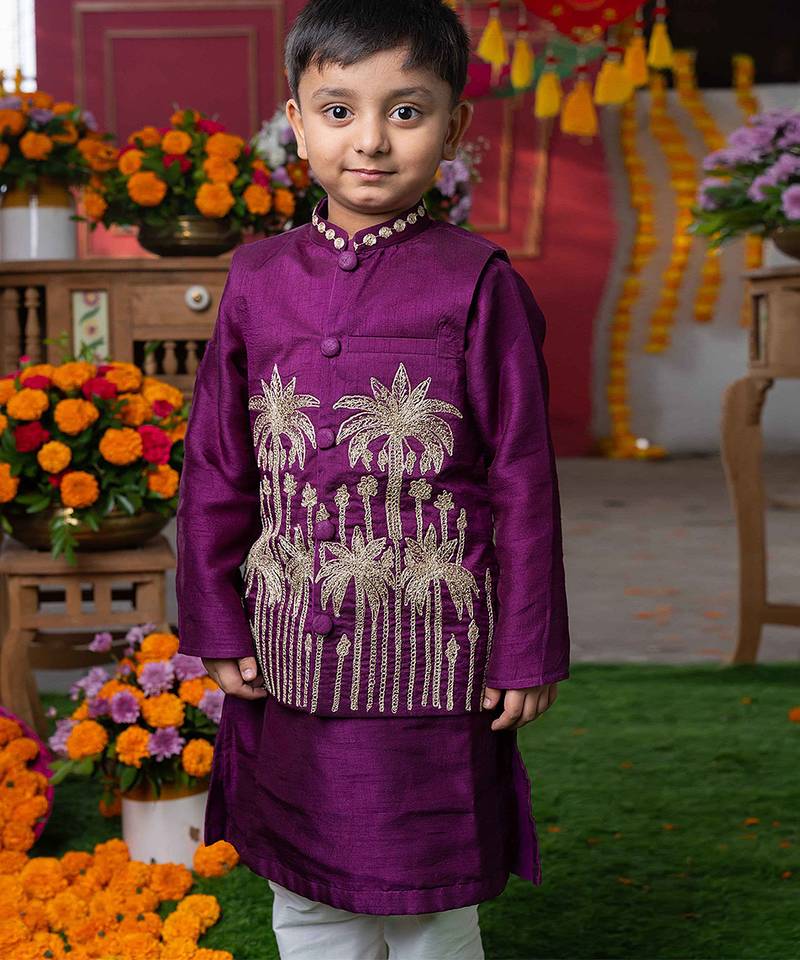 | Product Name | Purple Embroidered Silk Nehru Jacket Set | |