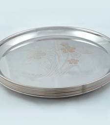 | Product Description | Set Of 6 Thali Having Laser Design Embossed On It , These Plates Are Suitable For Serving A Wholesome Meal Complete With Rice, Dal, 3 4 Rotis Along With 3 Sabzis .Being Dishwasher Friendly And Easy To Clean, They Require Minimal Maintenance.Being Dishwasher Friendly And Easy To Clean, They Require Minimal Maintenance.Make Serving Food Hassle Free With The Practical Kitchen Krafts Stainless Steel Dinner Plate Set! Made From 100% Food Grade Stainless Steel, These Plates Are A Food Safe And Durable Addition To Your Dining Room. The Heavy Gauge Material Makes Them Sturdy For Everyday Use. |