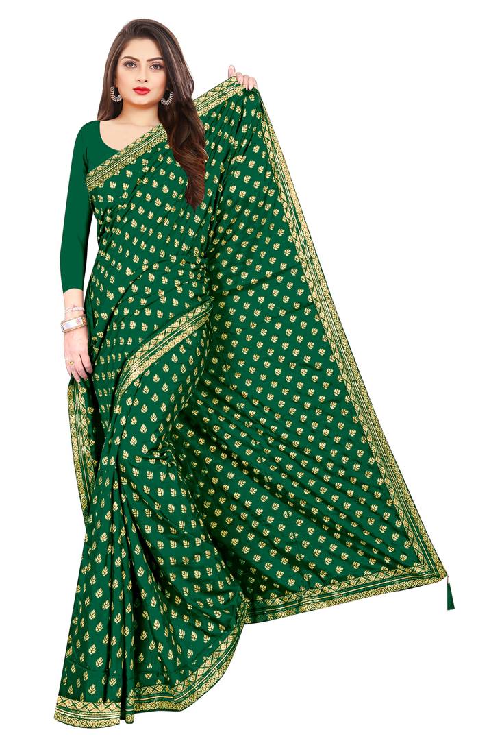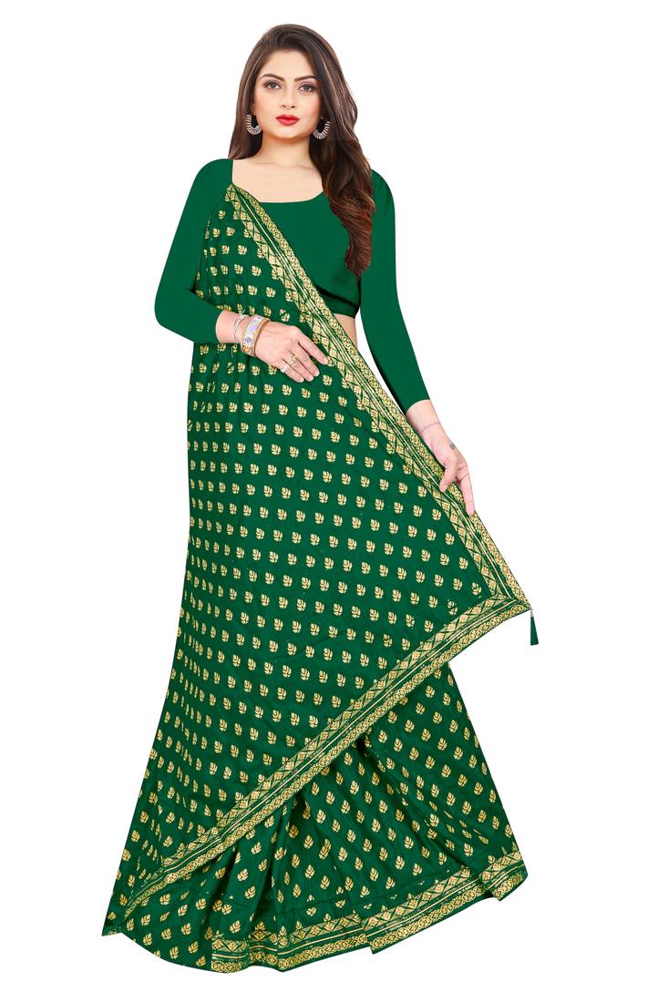 | Product Description | Green Chiffon Foil Print Saree With Blouse Piece |