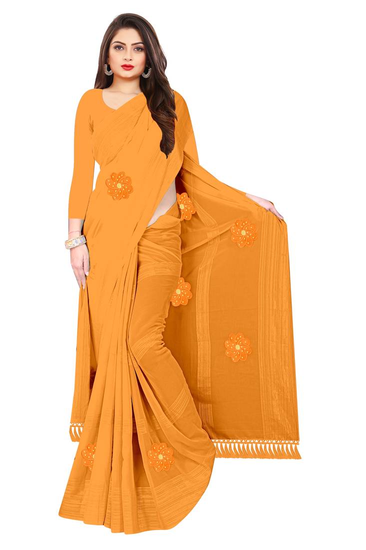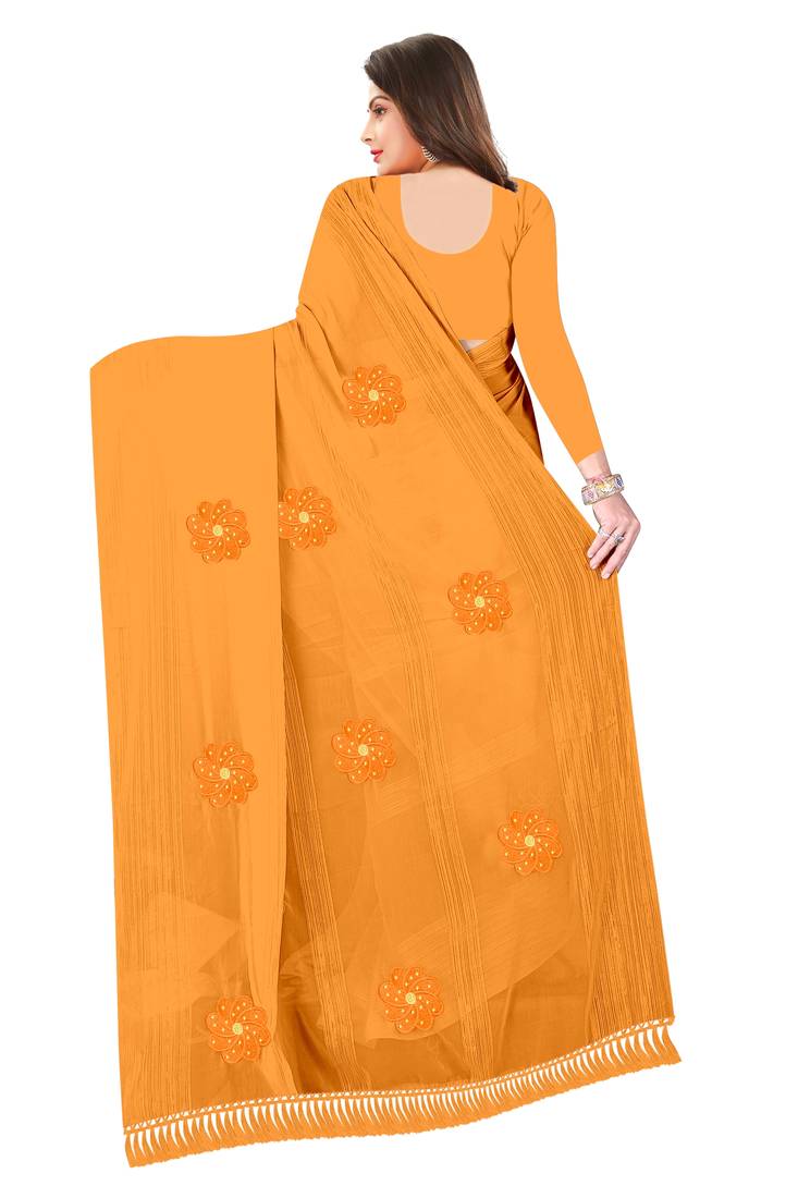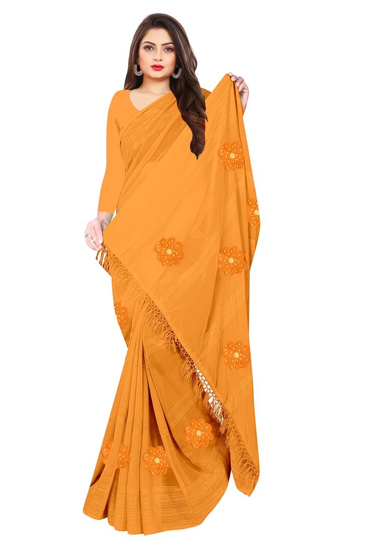 | Product Name | Orange Thread Work Shimmer Chiffon Embroidered Saree With Blouse | |
