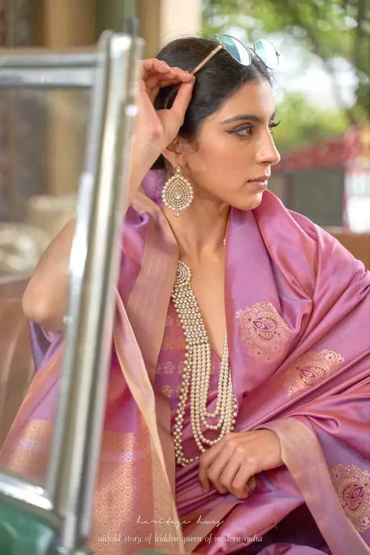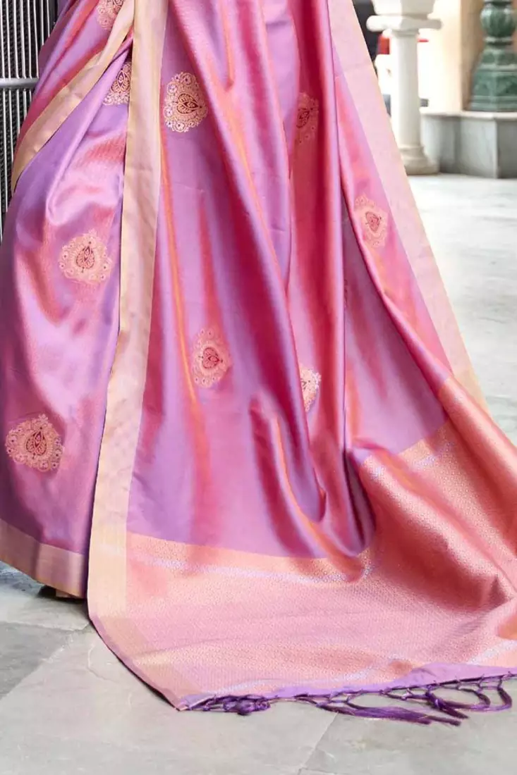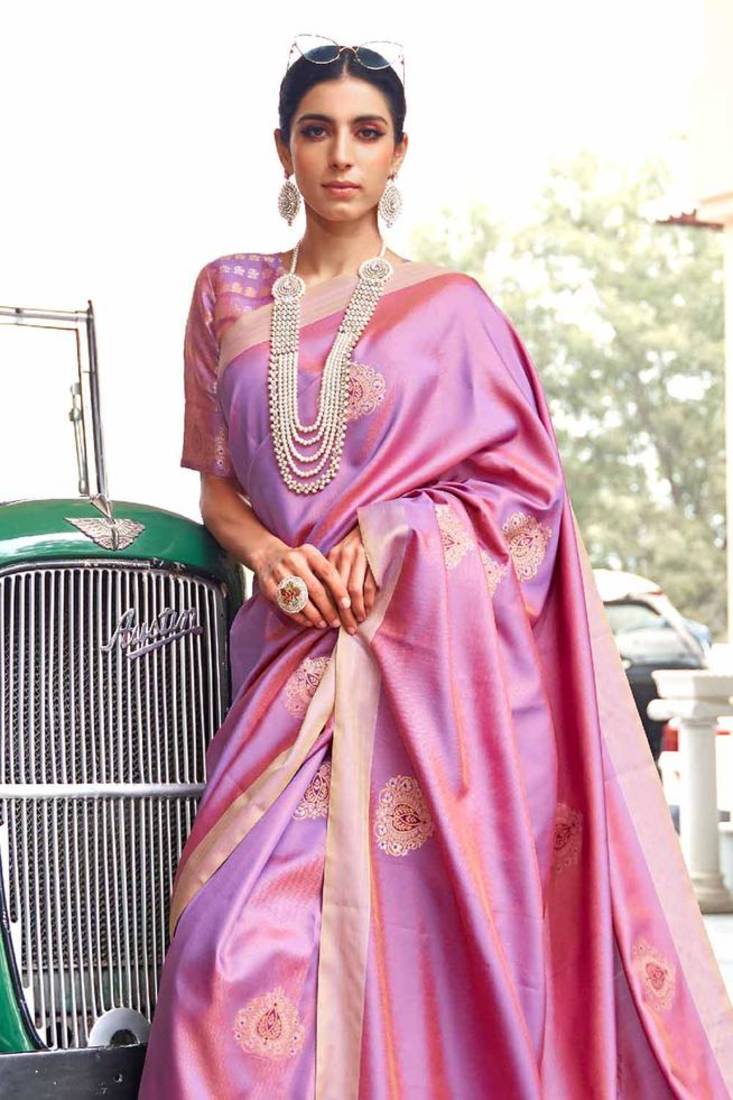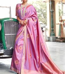 Korams design blended silk zari woven pink designer casual wear silk saree with blouse