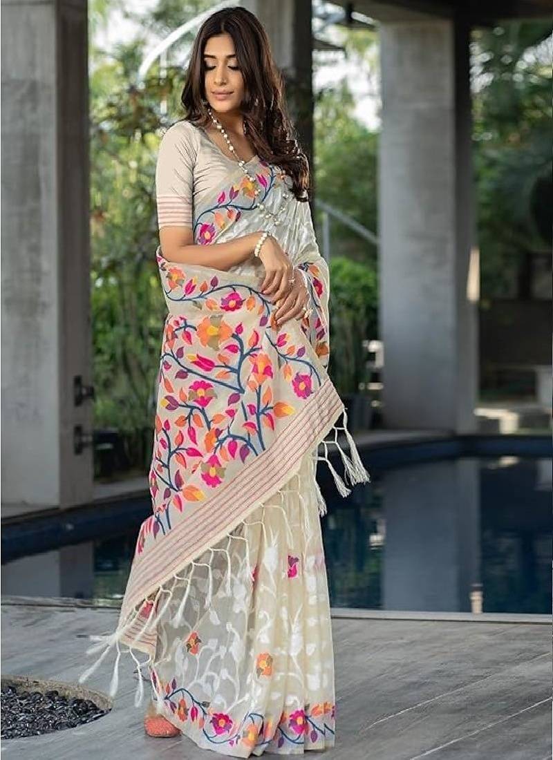 | • | Saree | : | Color- White / Fabric- Cotton Silk |