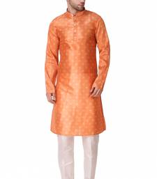 Koshin orange color art silk square digitally printed kurta pyjama for festive & wedding