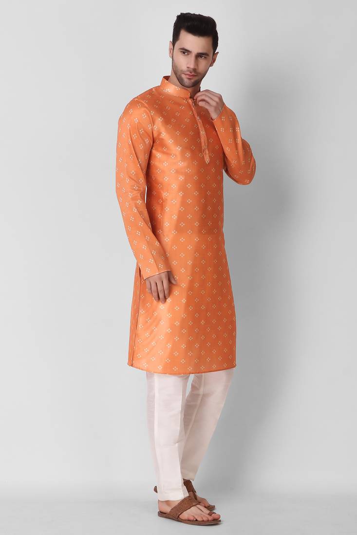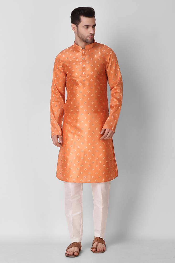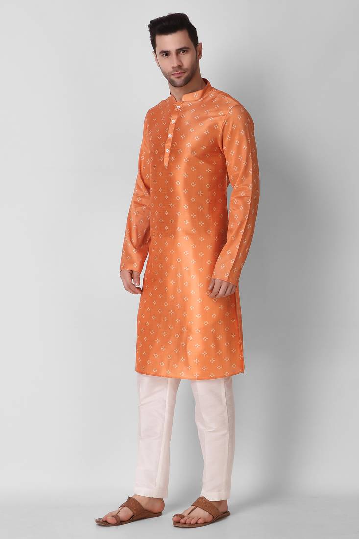 | Product Name | Koshin Orange Color Art Silk Square Digitally Printed Kurta Pyjama For Festive & Wedding | |