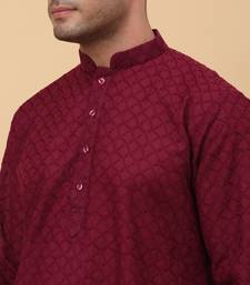 Product Name Men Cotton Maroon Chikan Embroidered Kurta