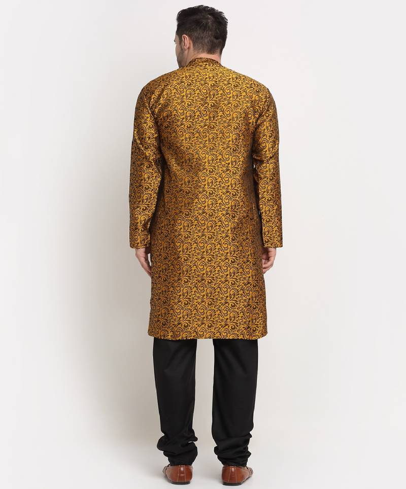 | Product Name | Men Jacquard Woven Design Yellow Kurta & Black Churidar Set | |
