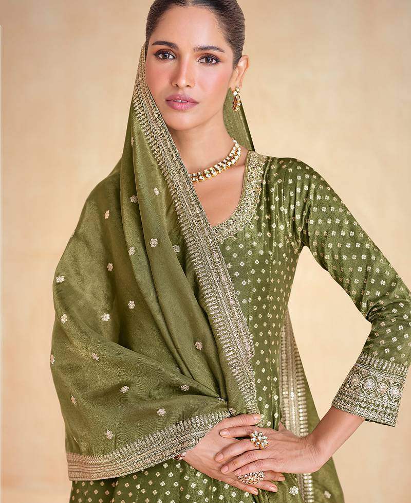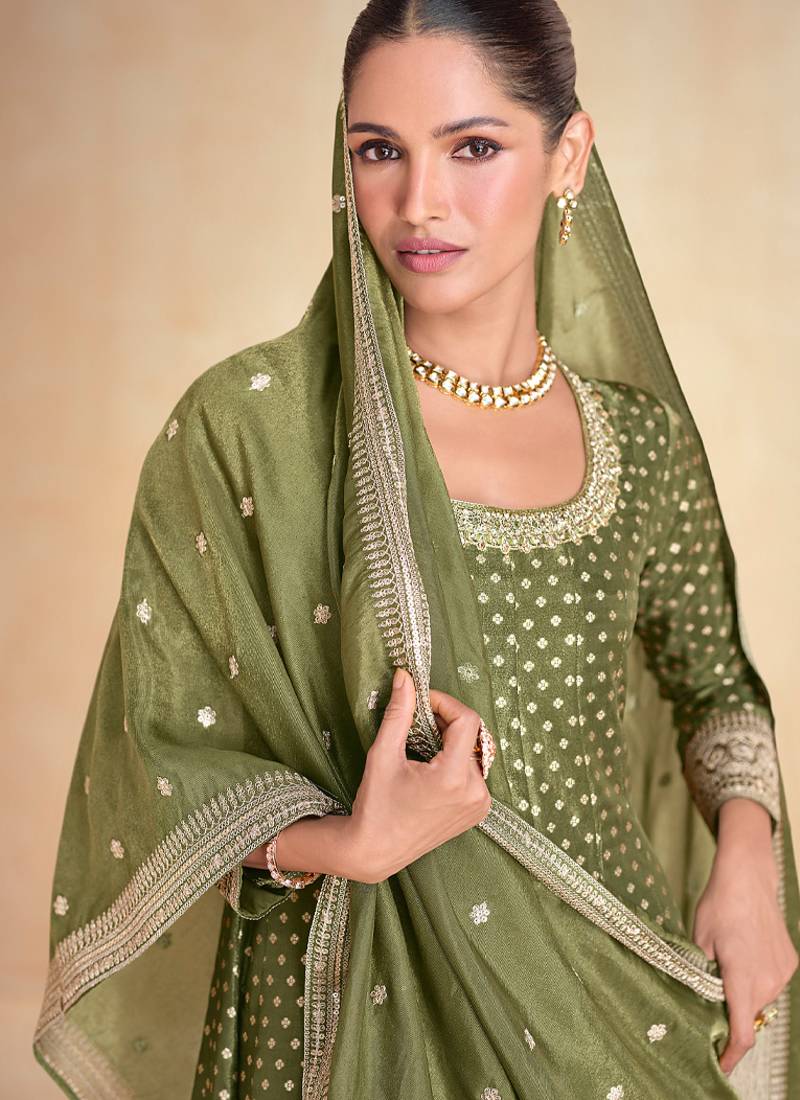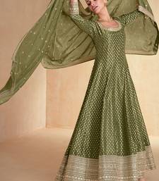Beautiful green jacquard anarkali suit for women festival wear semi stitched
