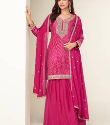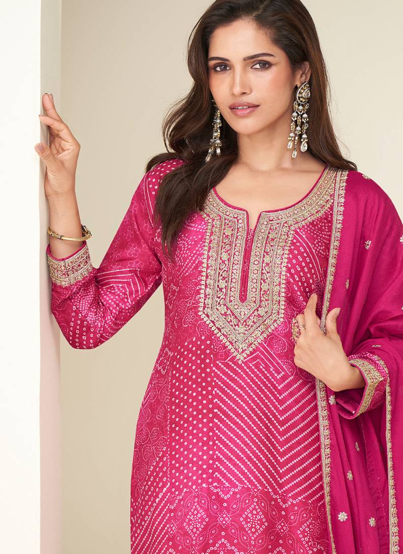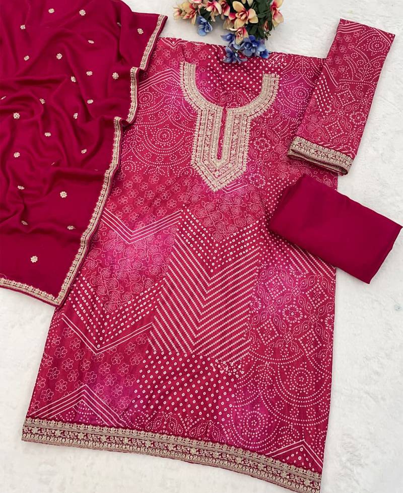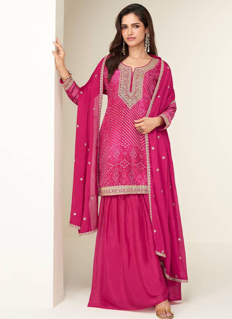 | Product Name | Beautiful Pink Chinon Palazzo Suit With Bandhani Print For Women | |