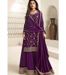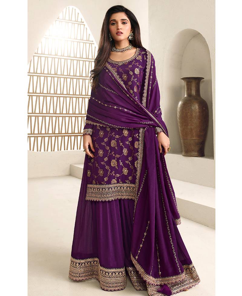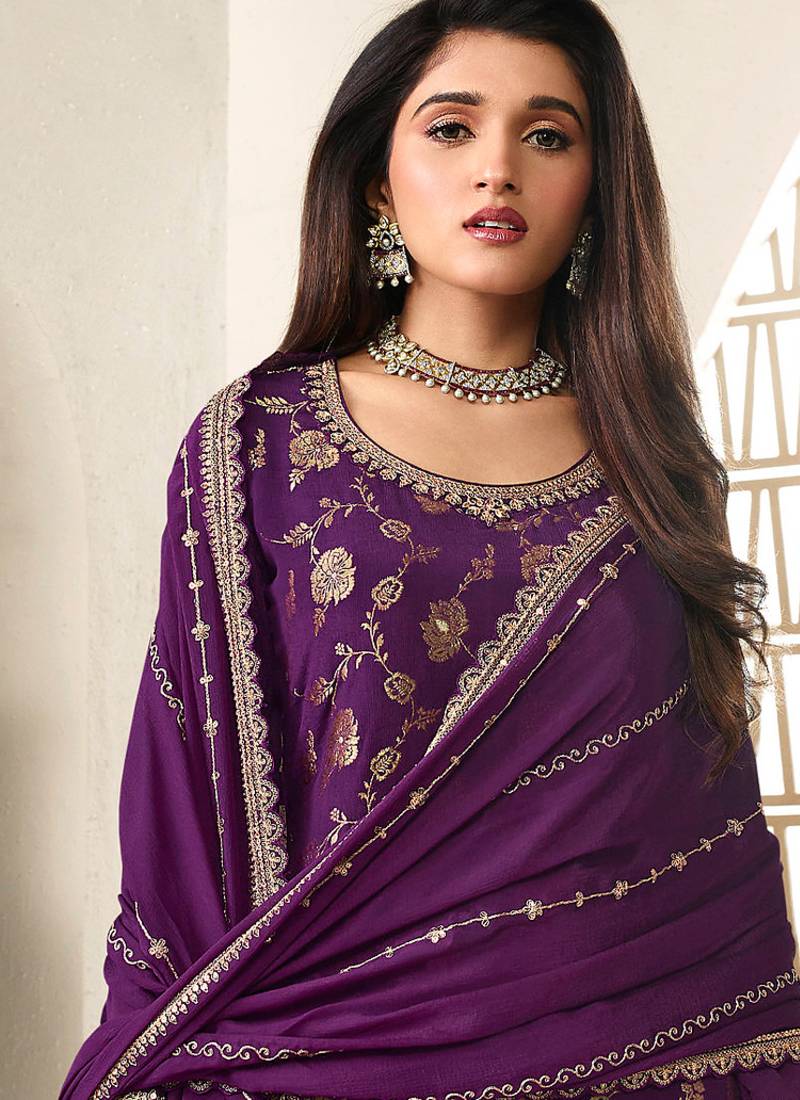 Designer jacquard purple palazzo suit for women ethnic wear semi stitched
