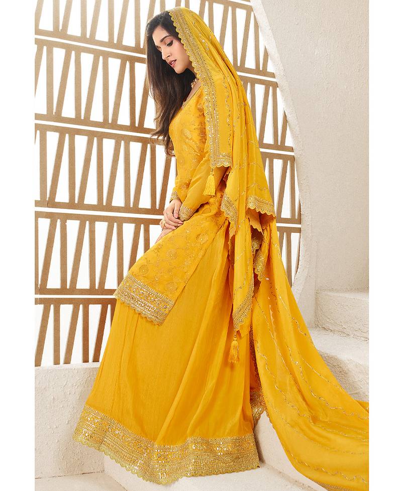 | Product Name | Designer Jacquard Yellow Palazzo Suit For Women Ethnic Wear | |