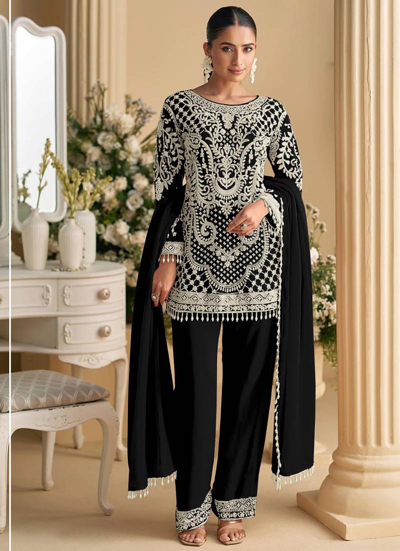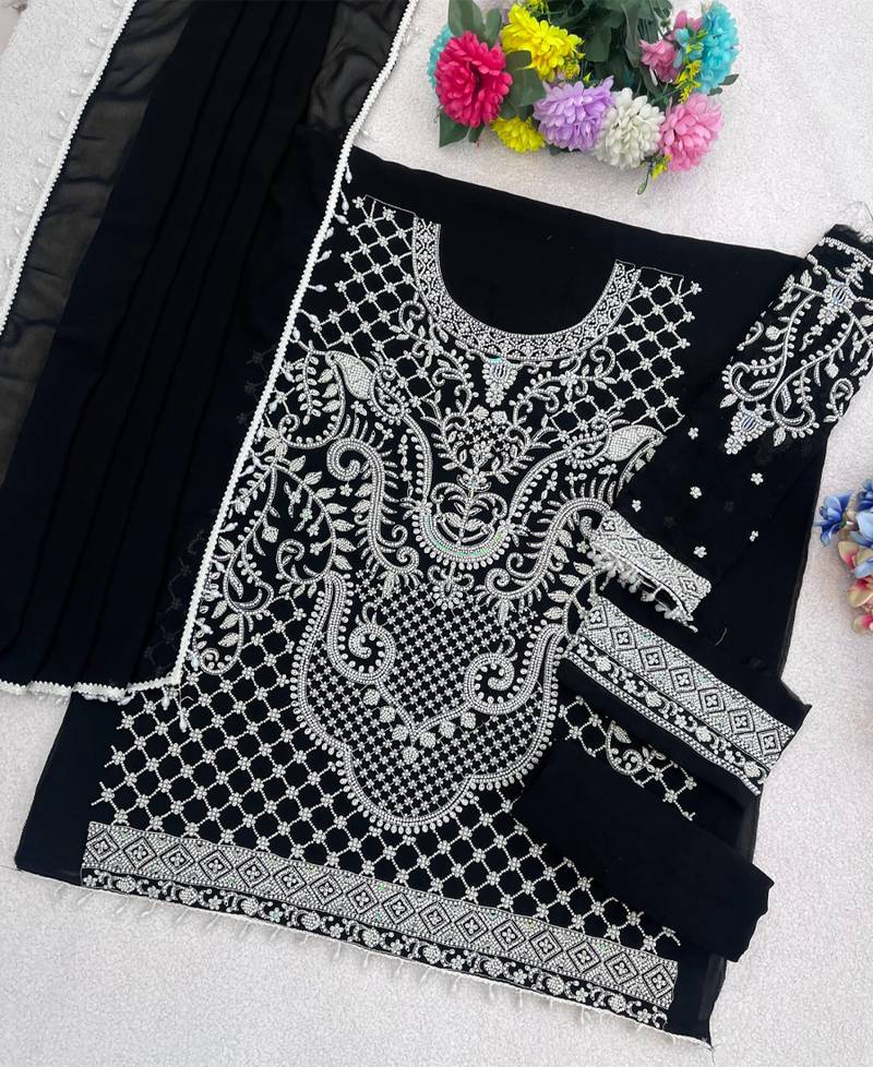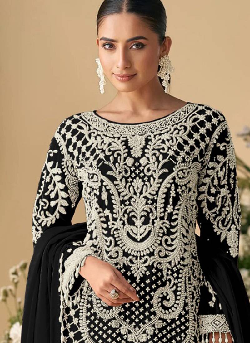 Designer pakistani style black georgette salwar suit for women wedding wear semi stitched