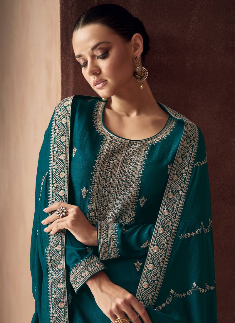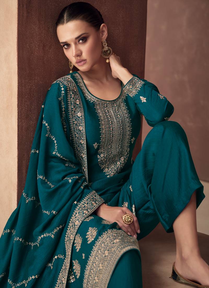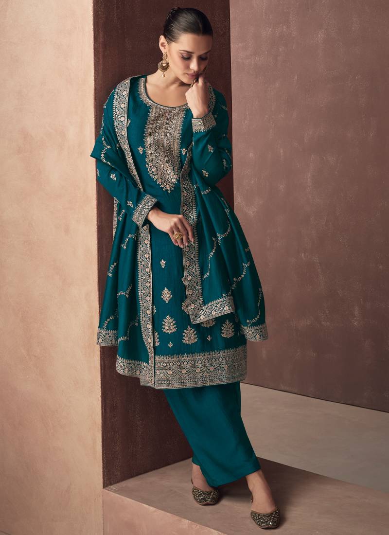 | Product Name | Designer Party Wear Silk Straight Suit In Aqua Blue Hue | |