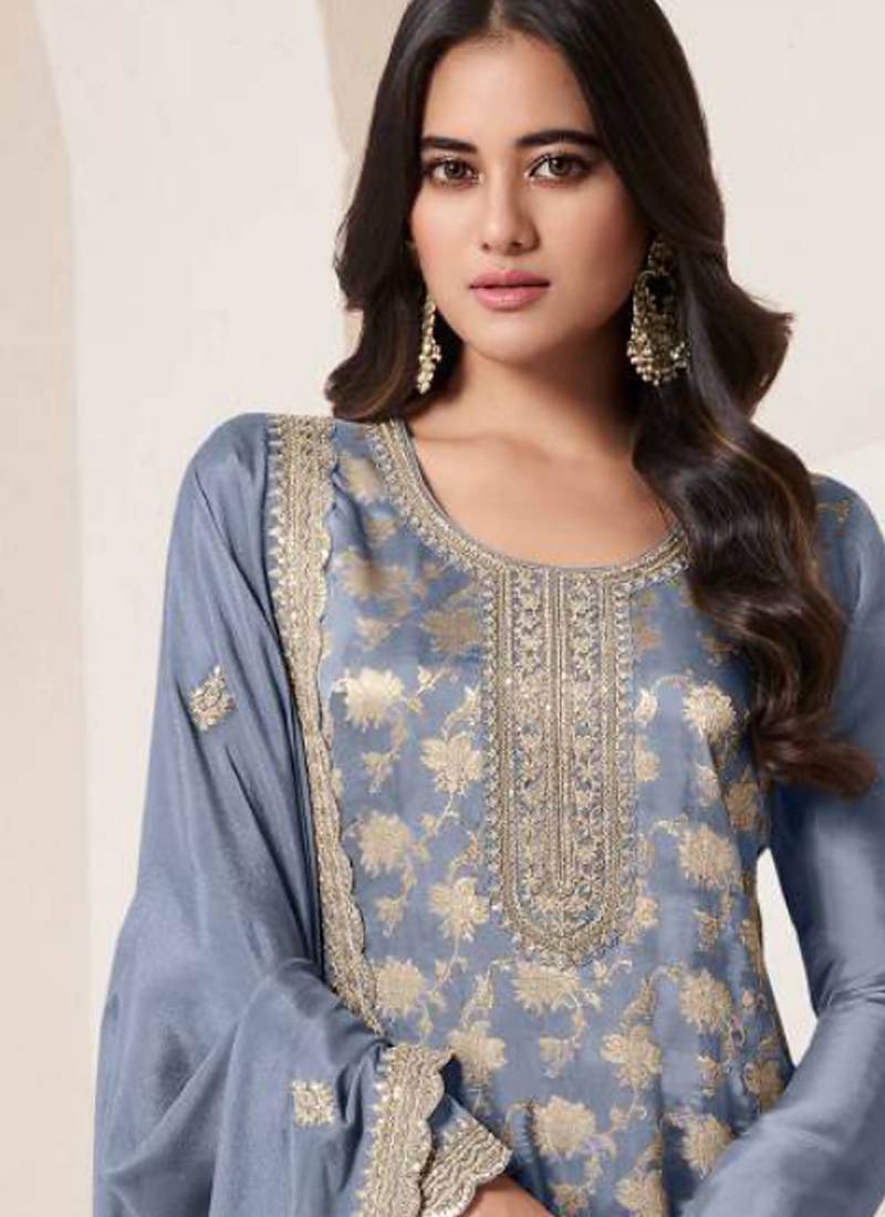 Fancy baby blue banarasi silk straight suit for women ethnic wear semi stitched