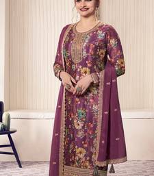 Floral printed magenta long suit for women chinon fabric semi stitched