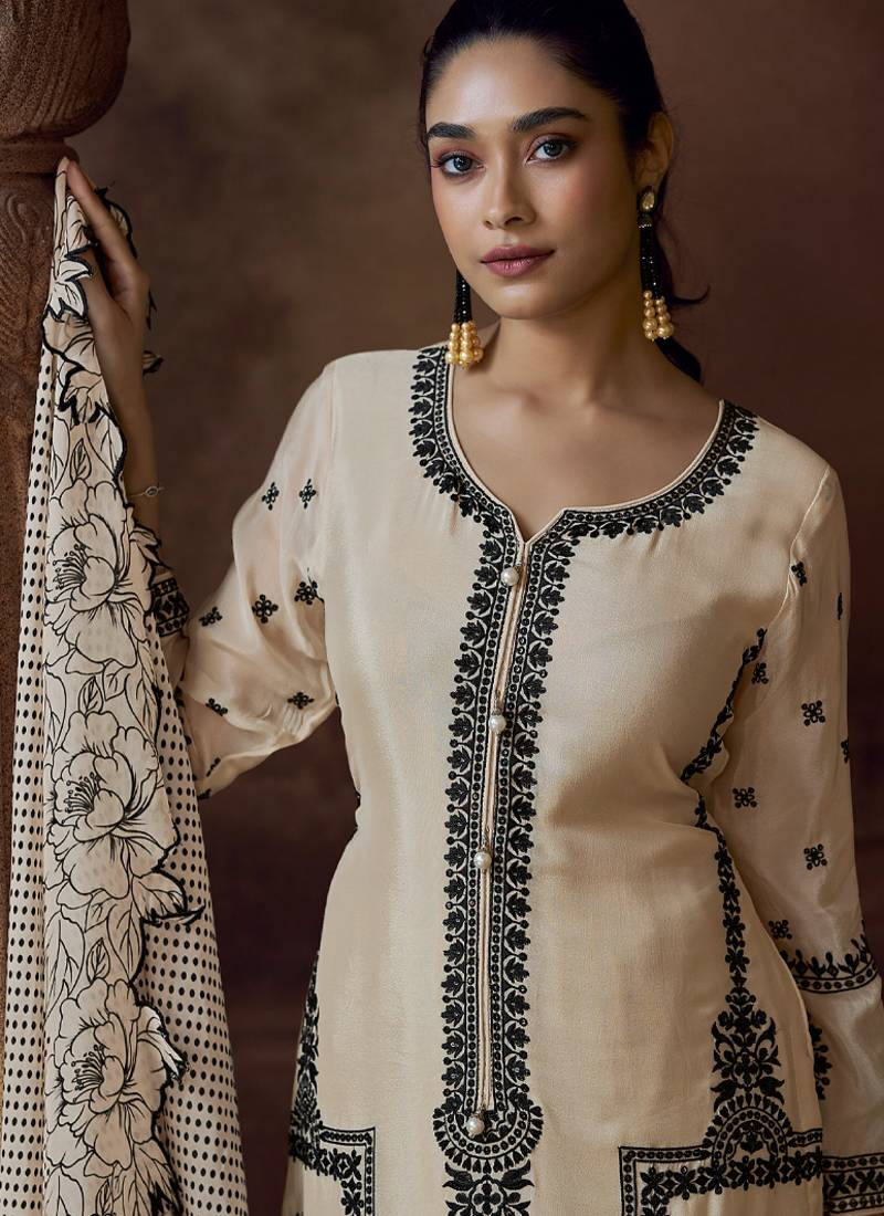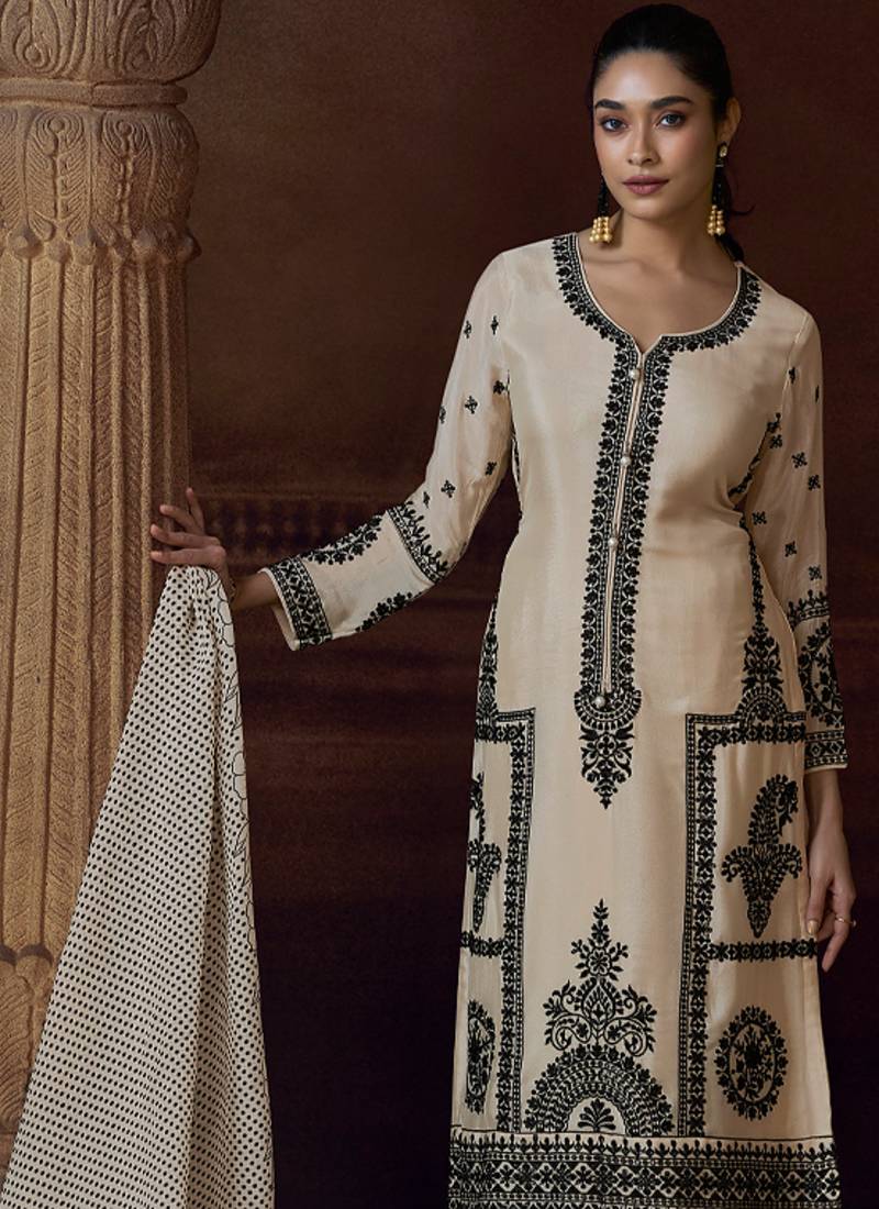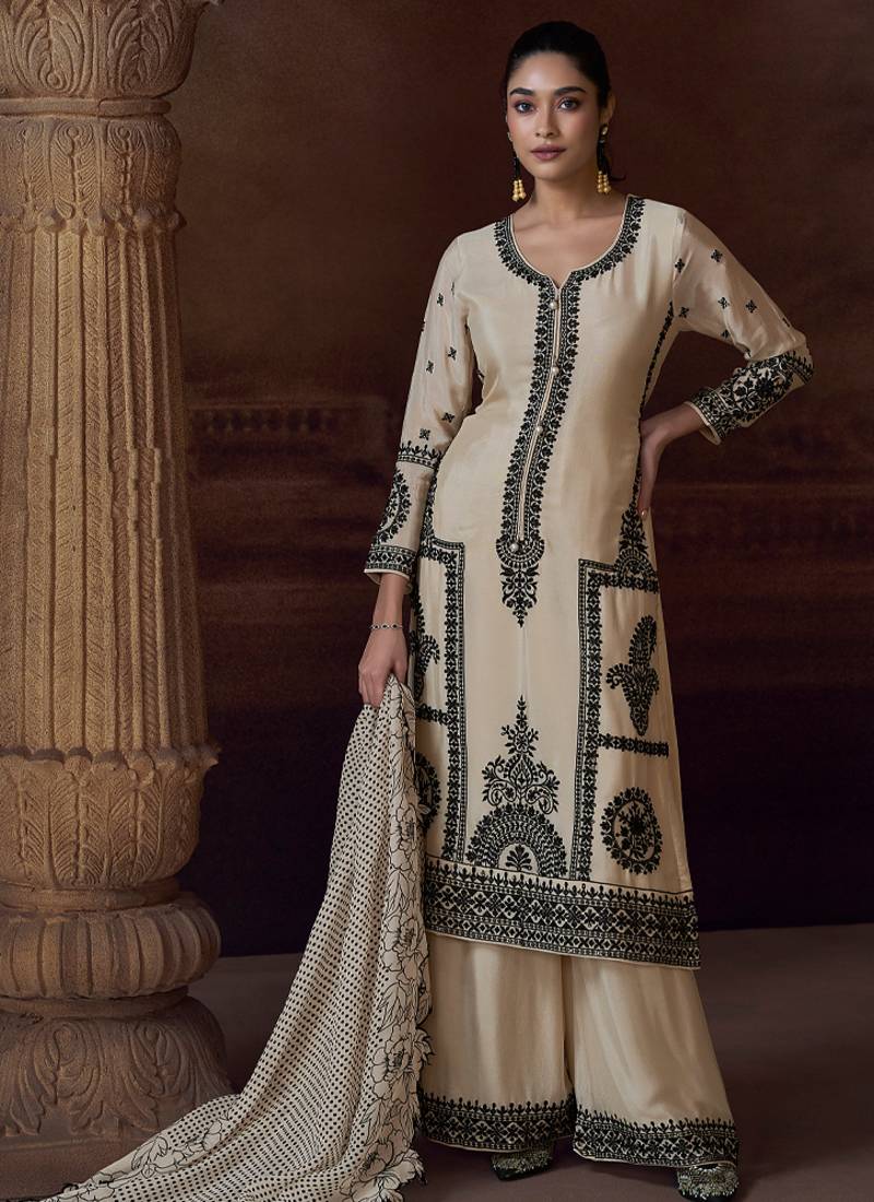 | Product Name | Latest Off White Chinon Pakistani Salwar Suit For Women Wedding Wear | |