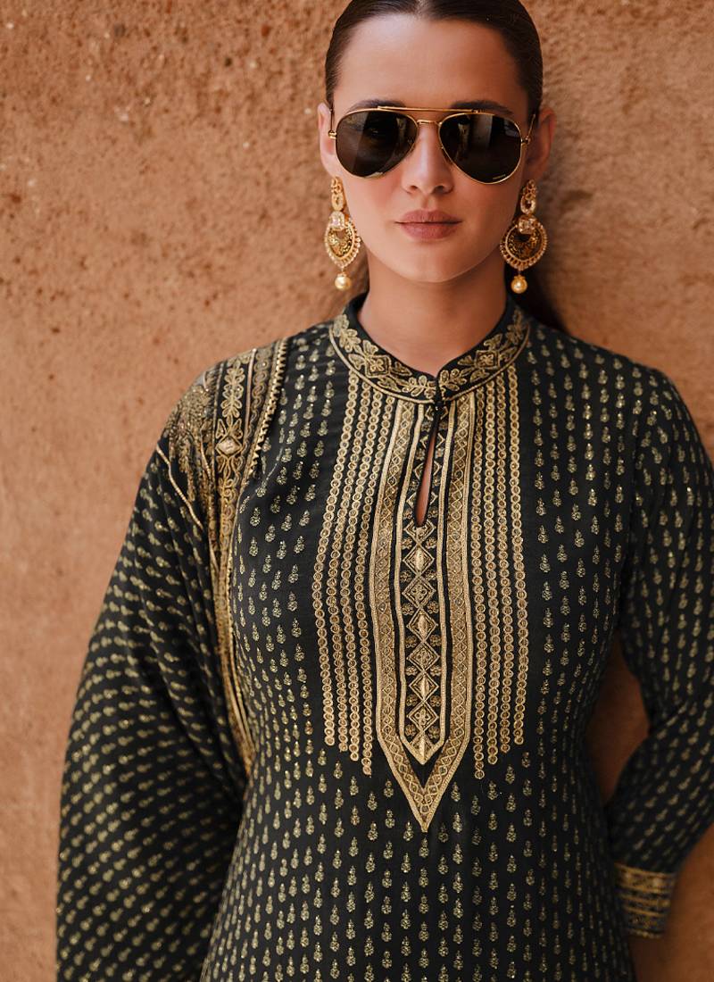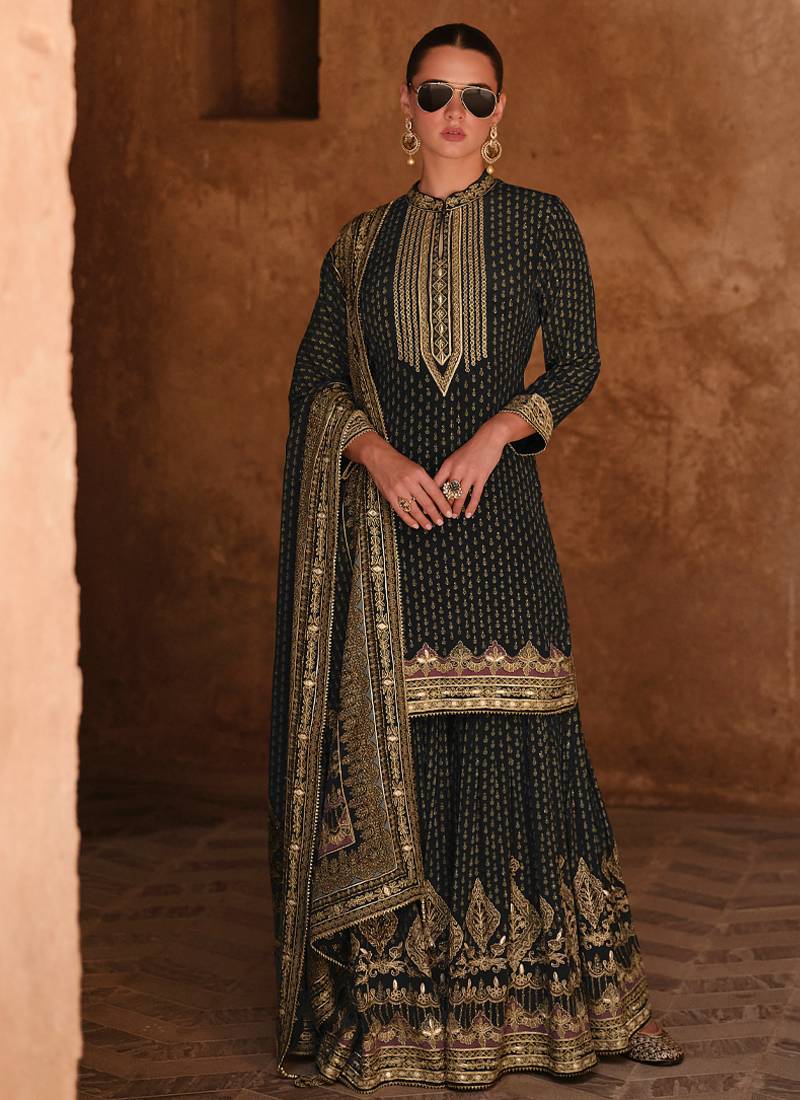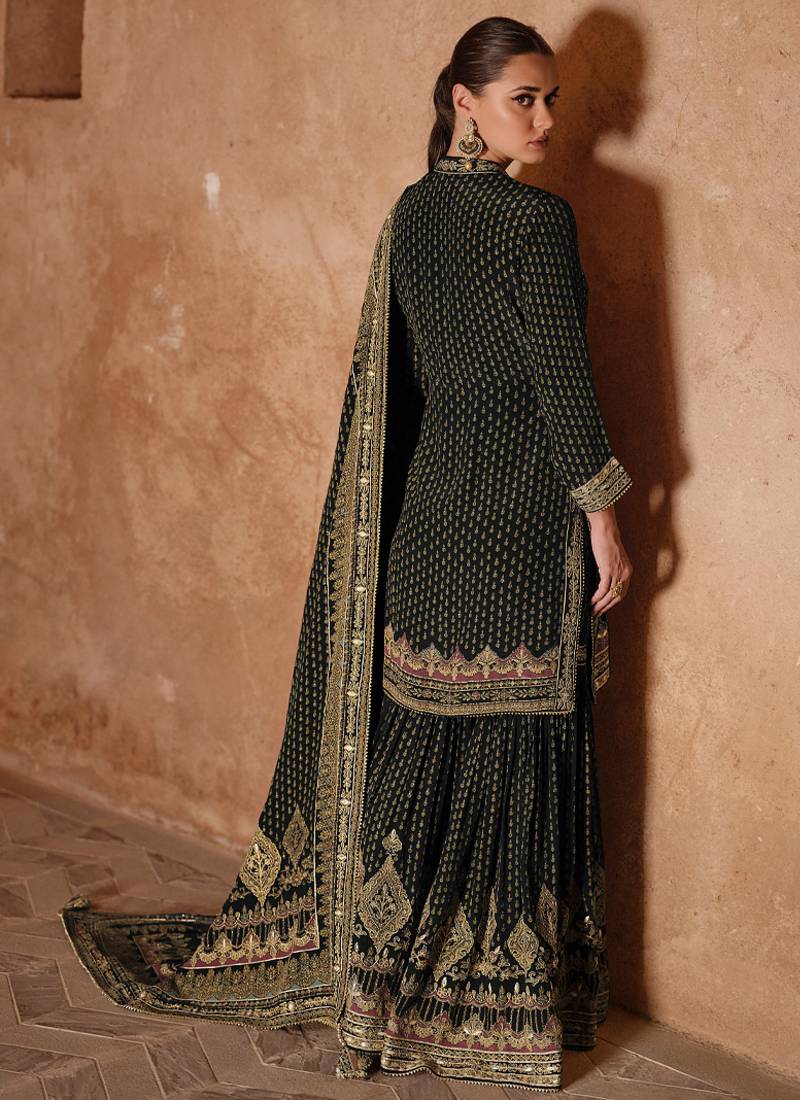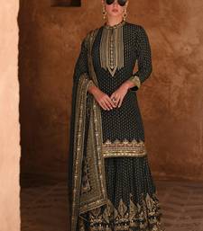 Latest wedding wear russian silk black gharara suit for women semi stitched