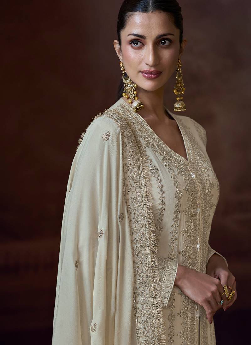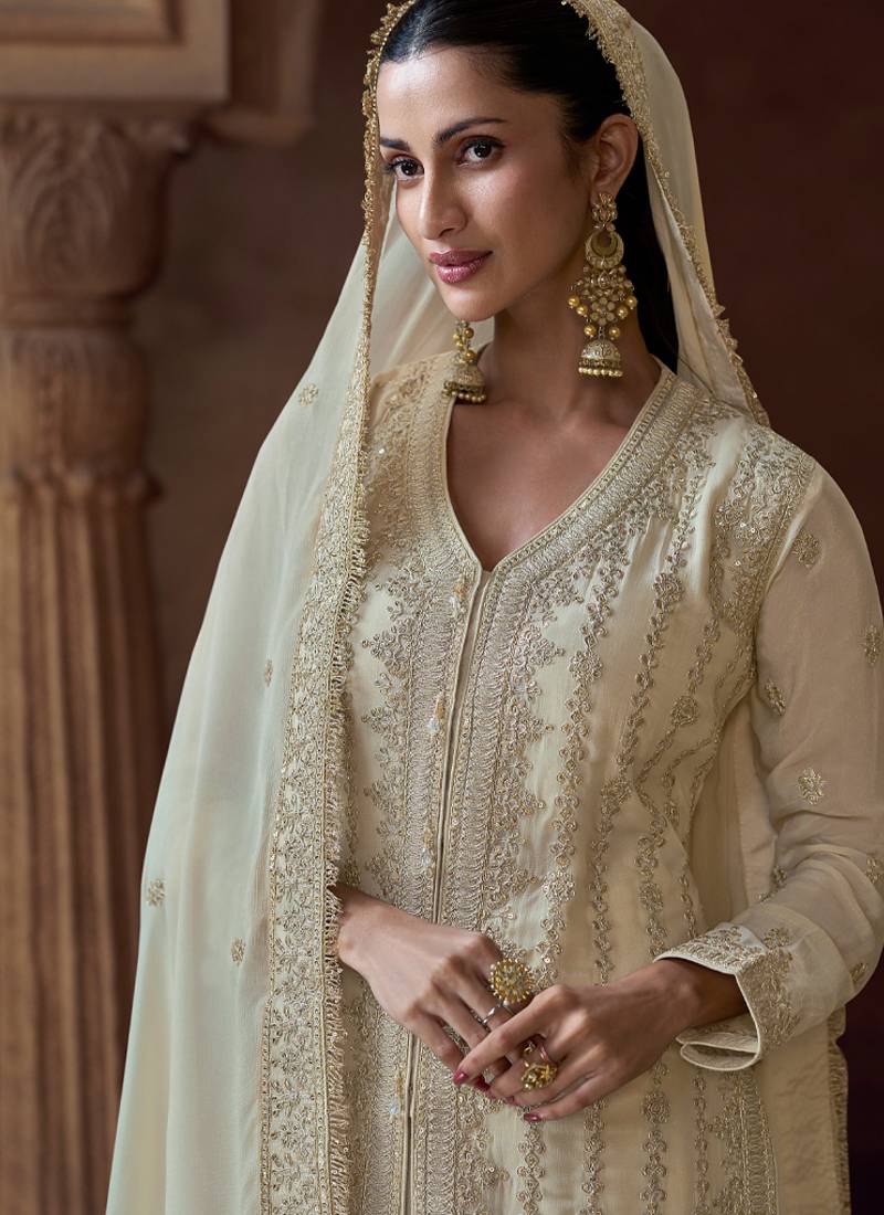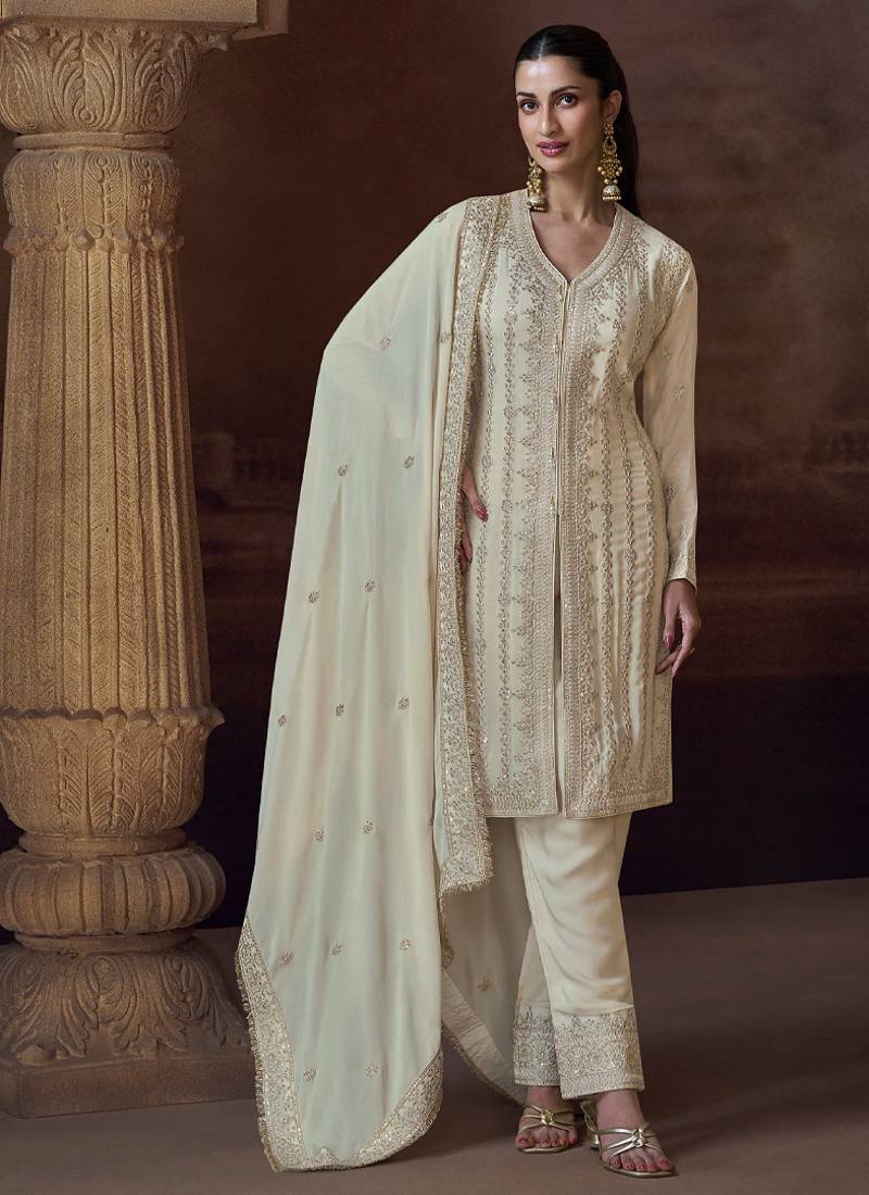 Latest white chinon pakistani salwar suit for women wedding wear semi stitched