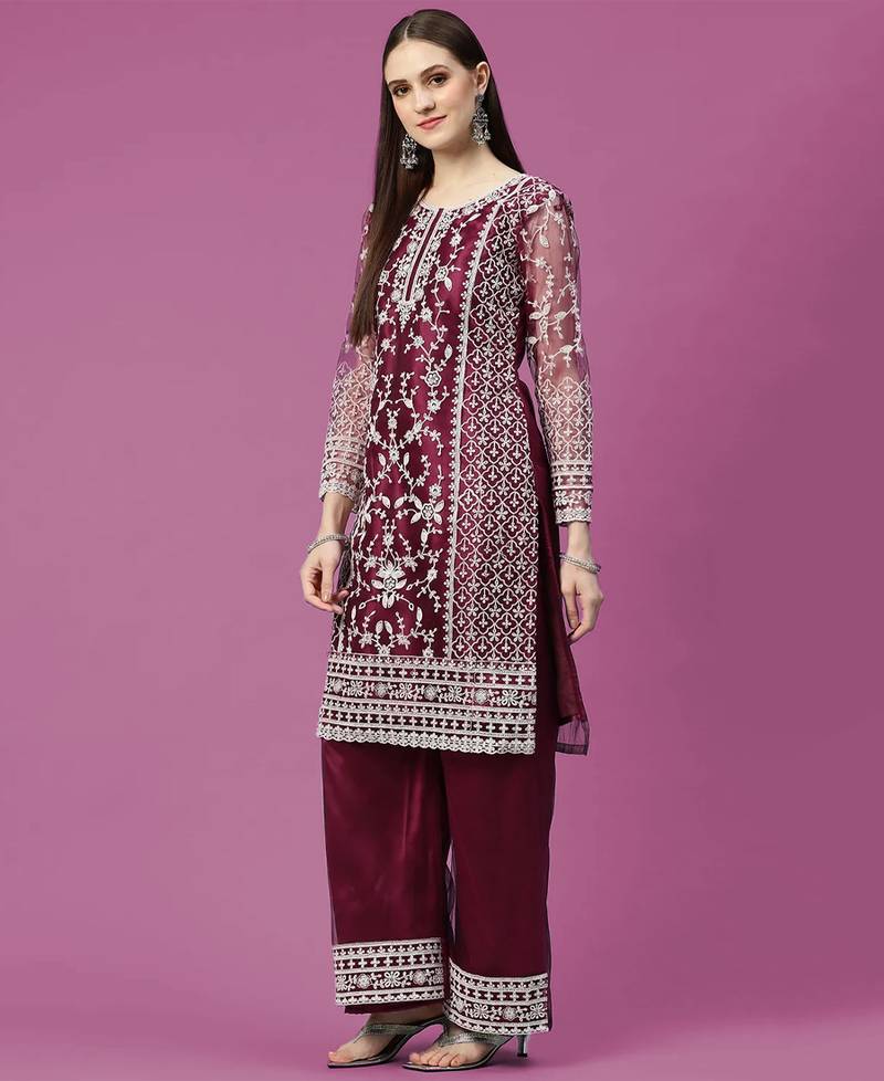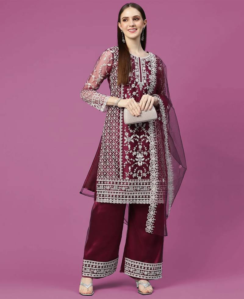 | Product Name | Net Salwar Palazzo Suit Wine | |