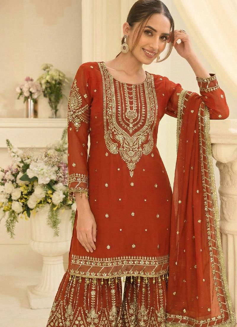 orange georgette sharara suit for women stitched