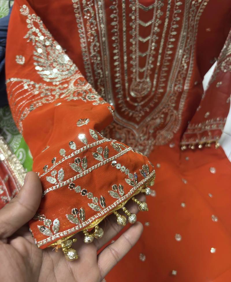 | • | Kameez | : | Color- Orange / Fabric- Georgette |