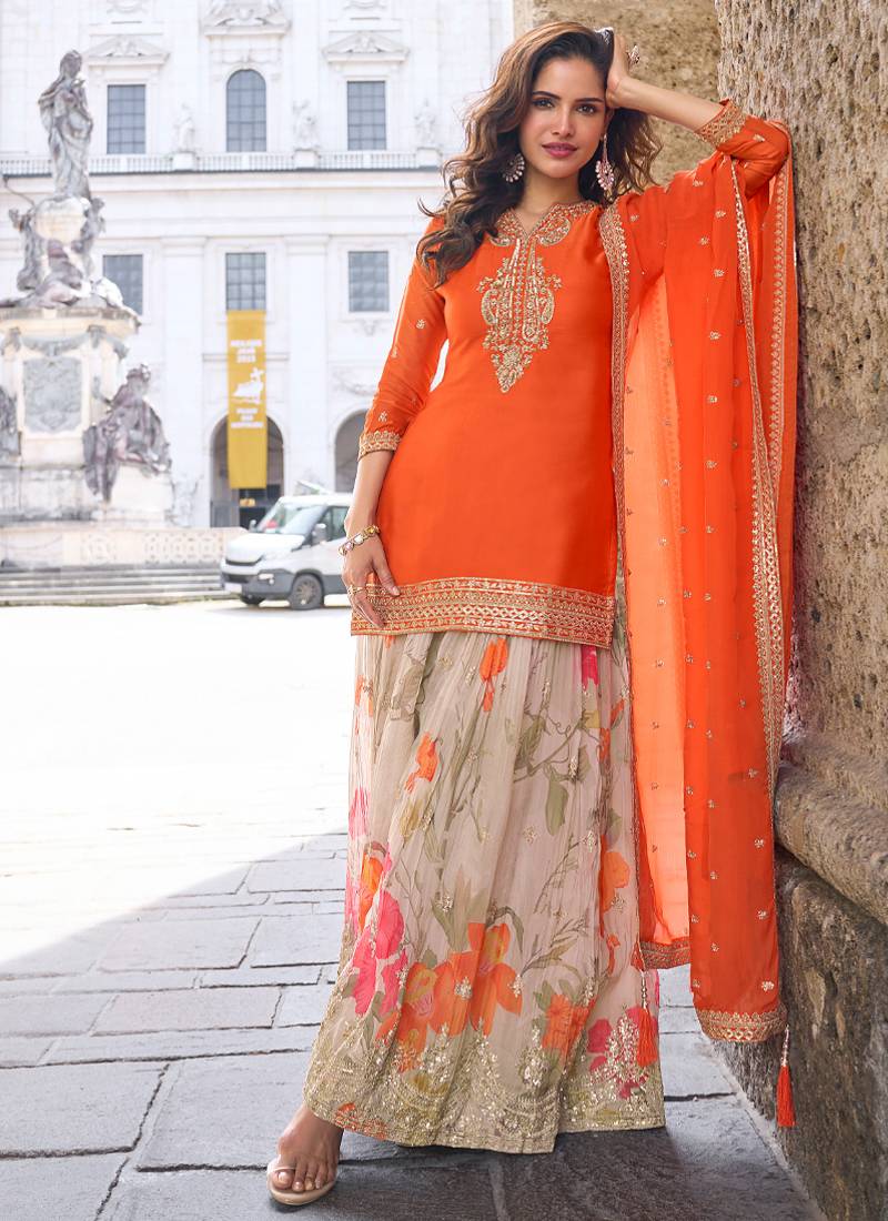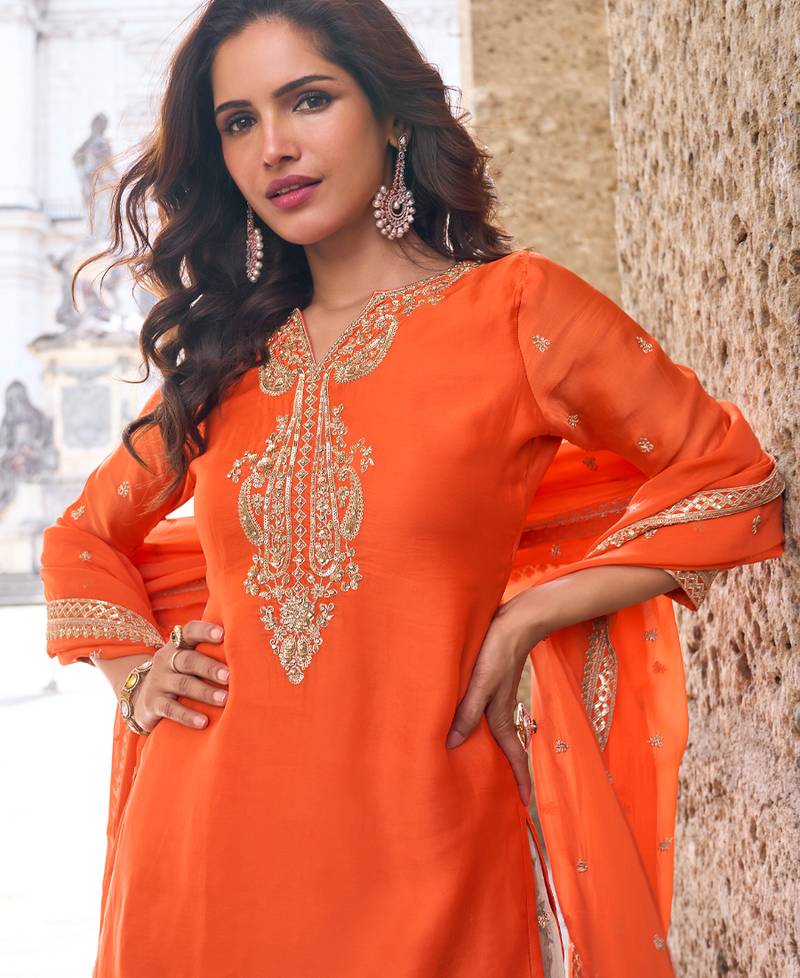| Product Name | New Festival Wear Chinon Orange Salwar Kameez For Women | |