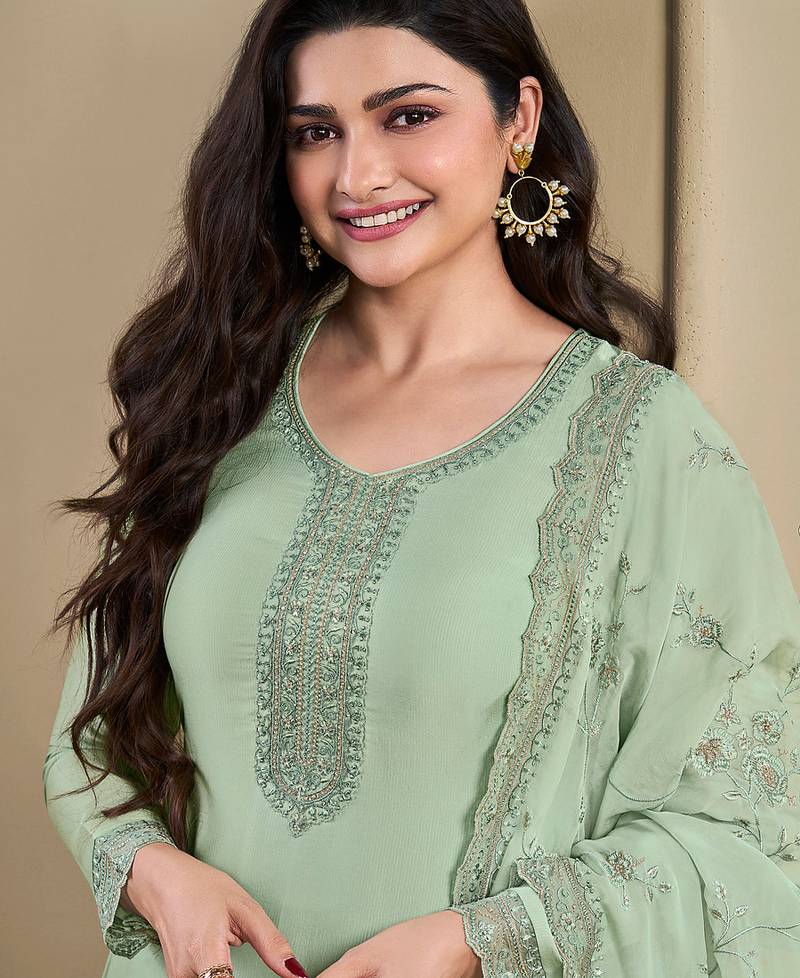 | Product Name | New Wedding Wear Pista Green Crep Silk Straight Suit For Women | |