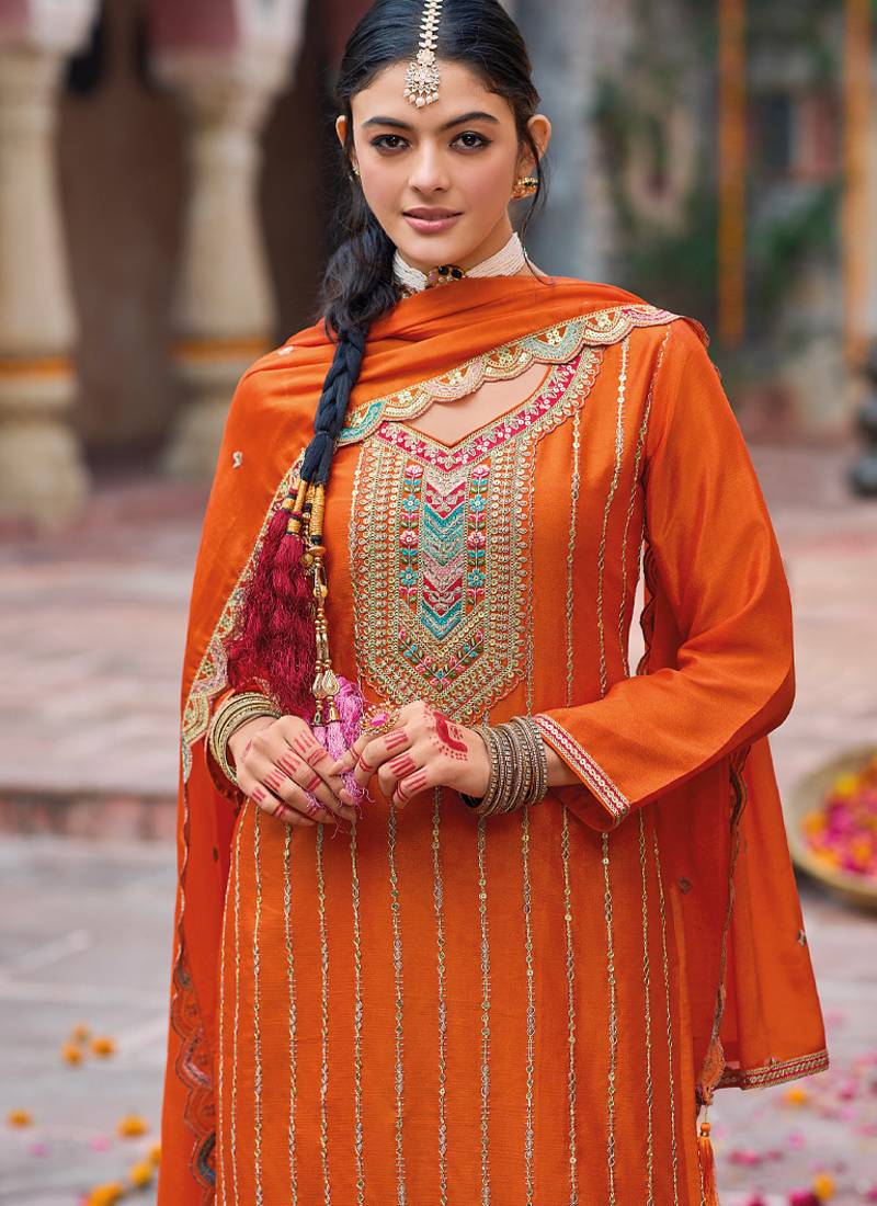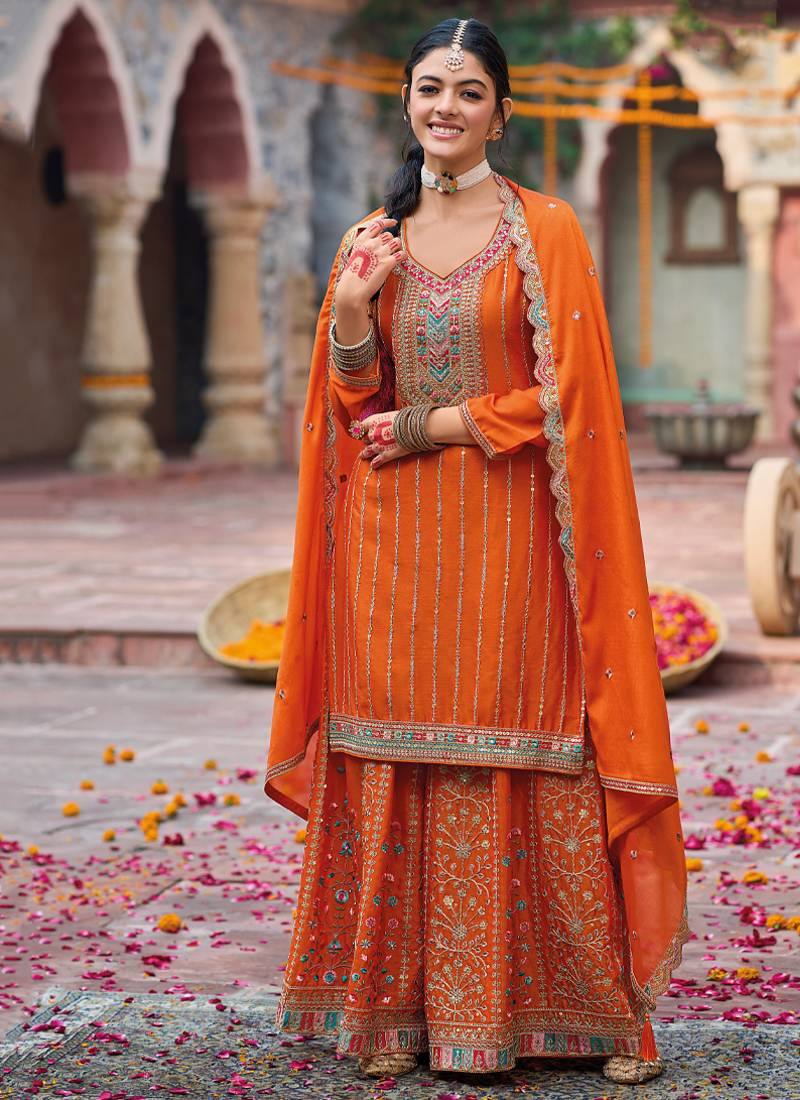 | Product Name | Palazzo Suit For Women Chinon Embroidered Orange Full Stitched Free Size | |