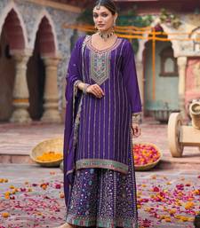 Palazzo suit for women chinon embroidered purple-full stitched free size semi stitched
