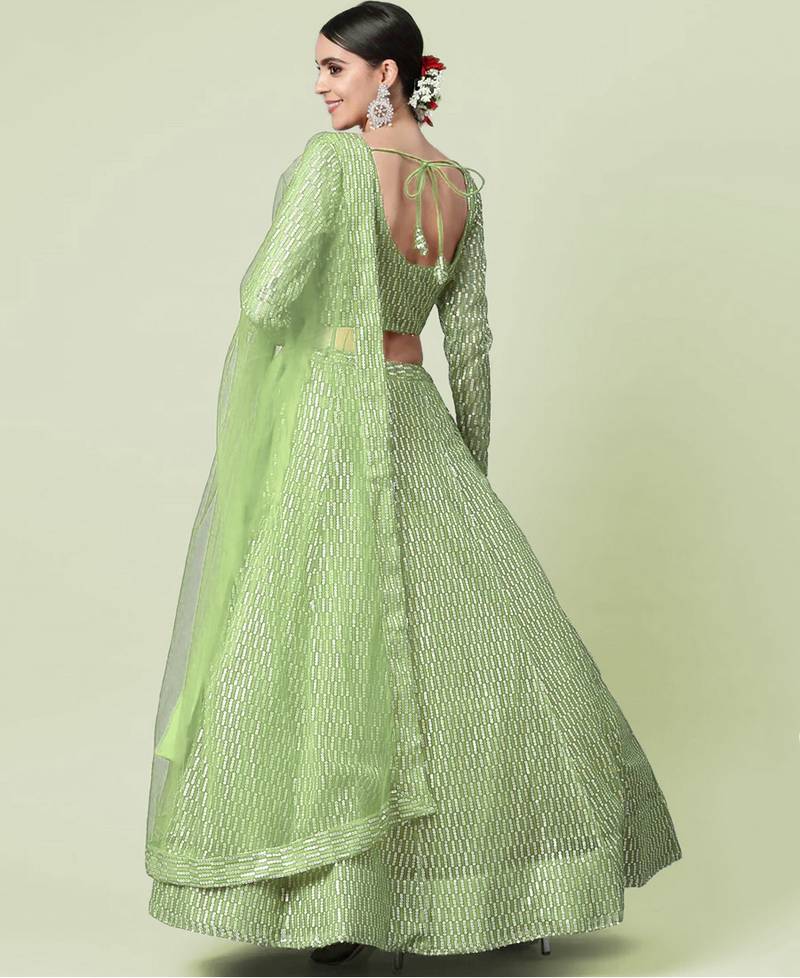 Sequin lehenga choli net pista green