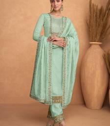 Sky blue silk straight suit indian pakistani festival wear semi stitched