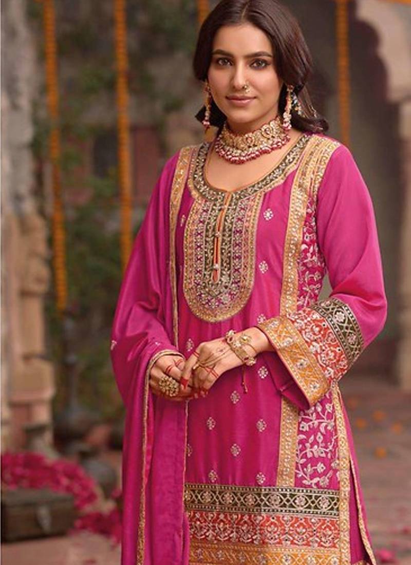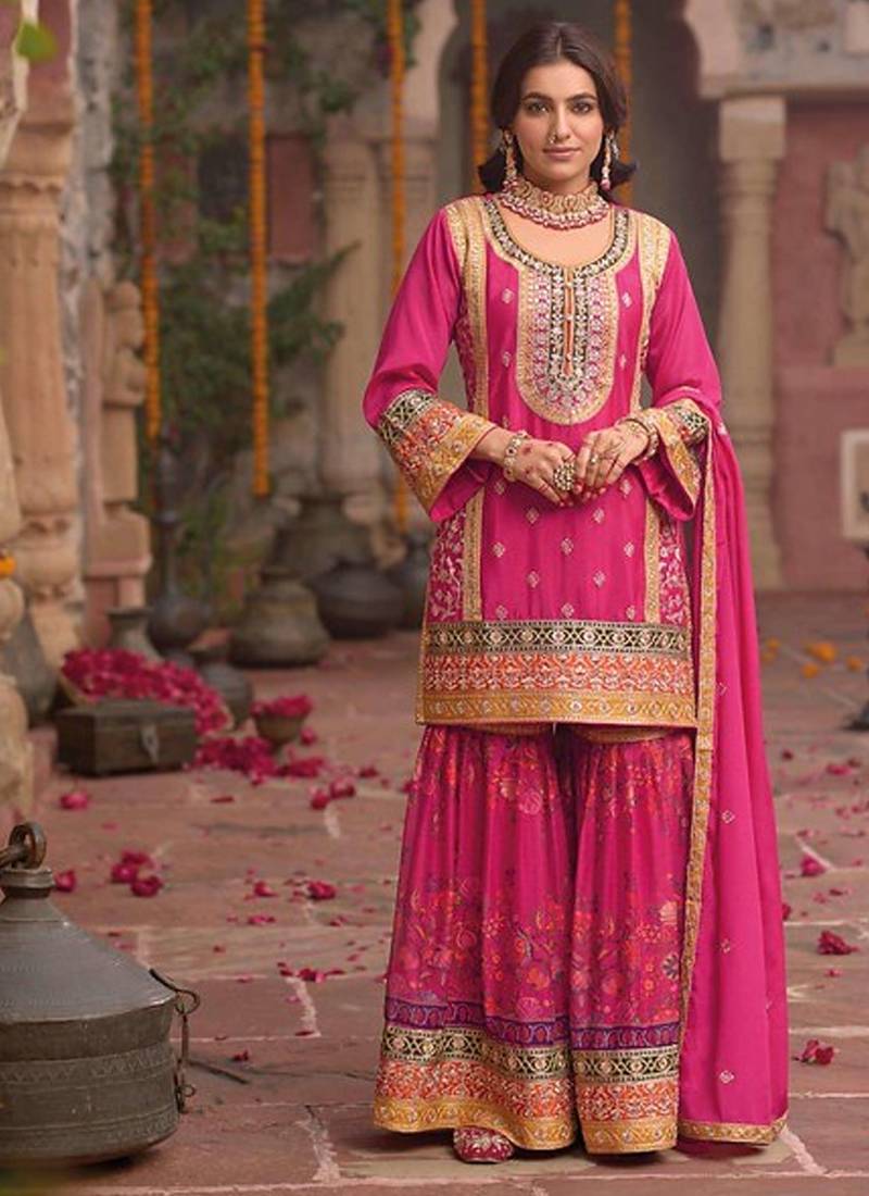 | Product Name | Stylish Pink Floral Printed Heavy Wedding Wear Gharara Suit For Women | |