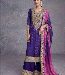 Traditional bandhani printed blue palazzo suit for women wear semi stitched