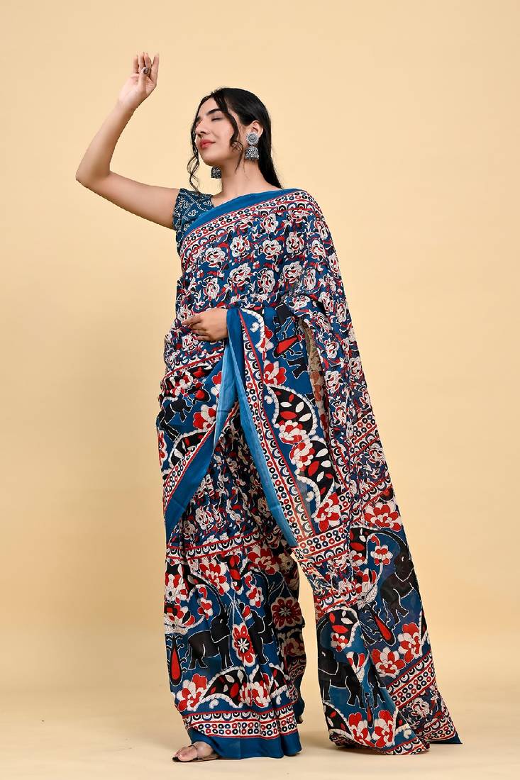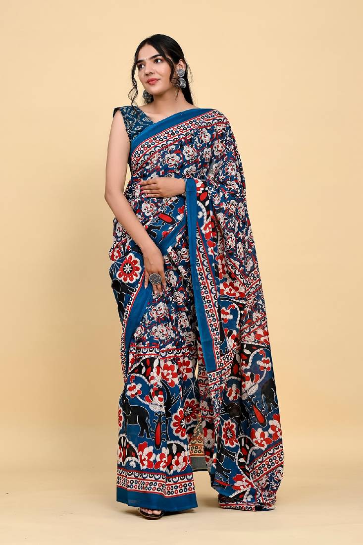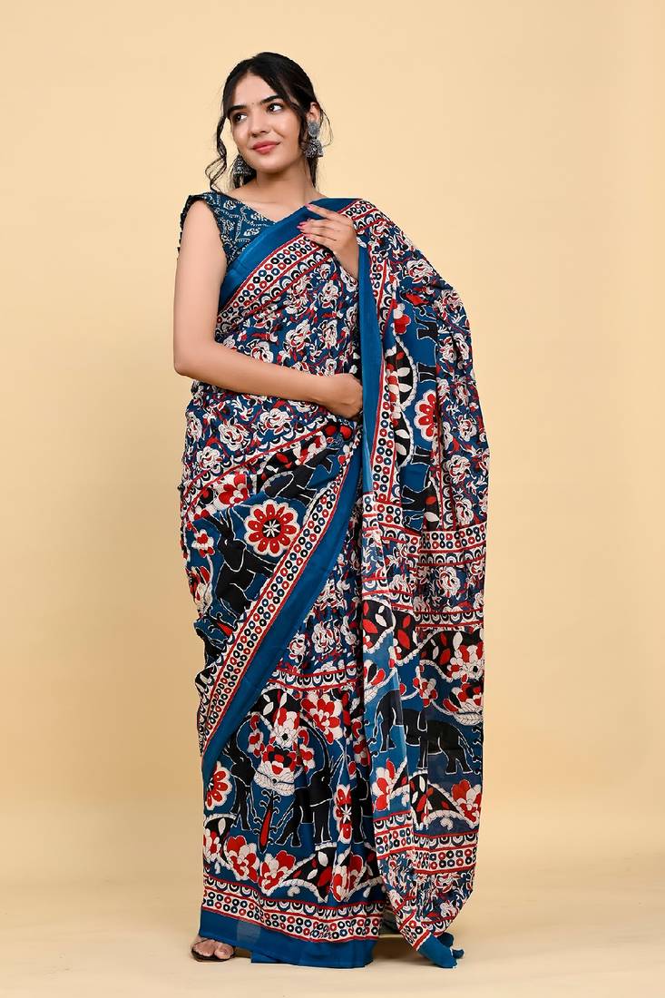 | Product Name | Elephant & Floral Print Cotton Saree With Unstitch Blouse Piece | |