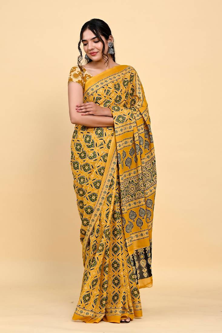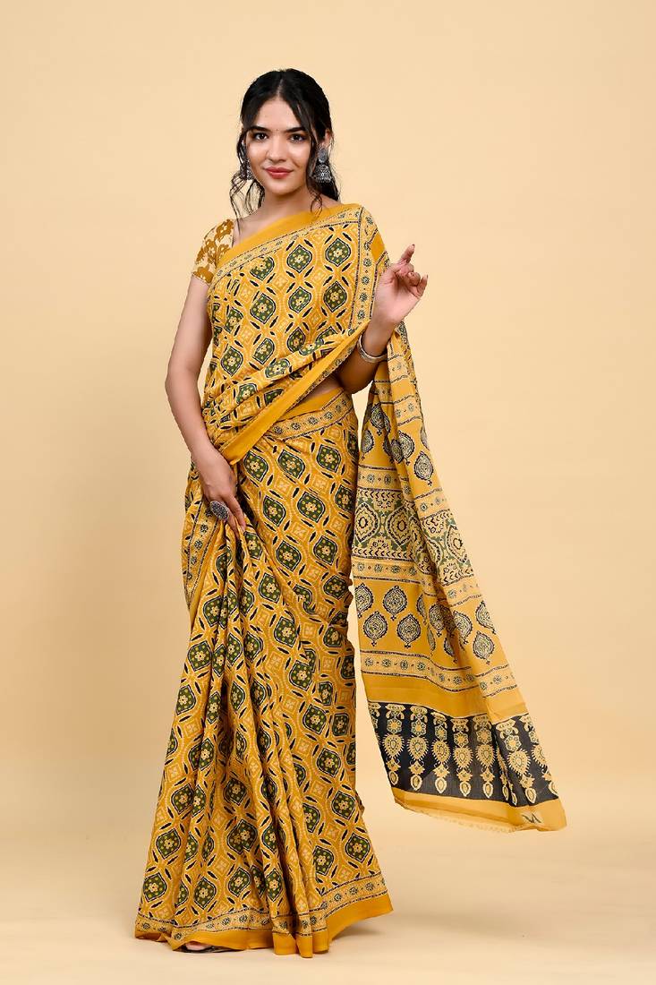 | Product Name | Yellow & Green Block Printed Cotton Saree With Unstitched Blouse | |