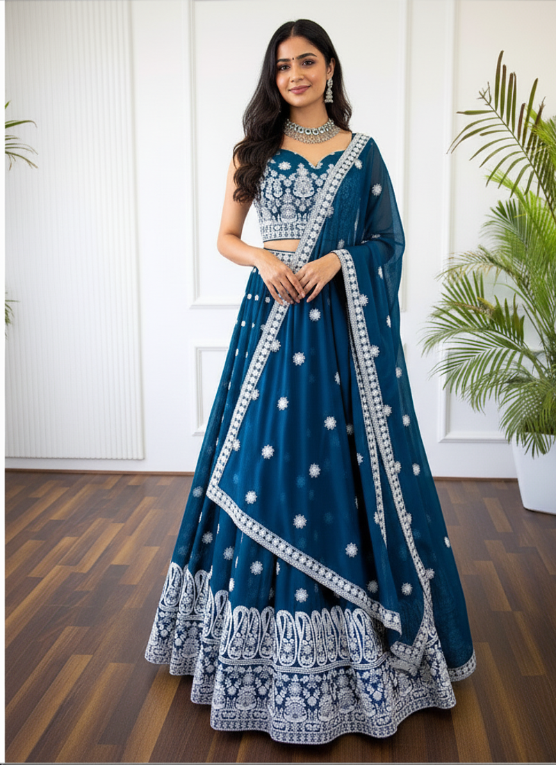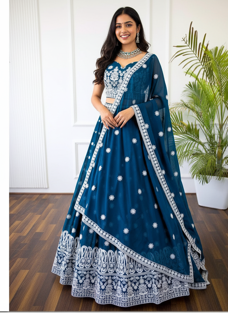 | Product Name | Blue Lehenga Cholis With White Thread Work | |