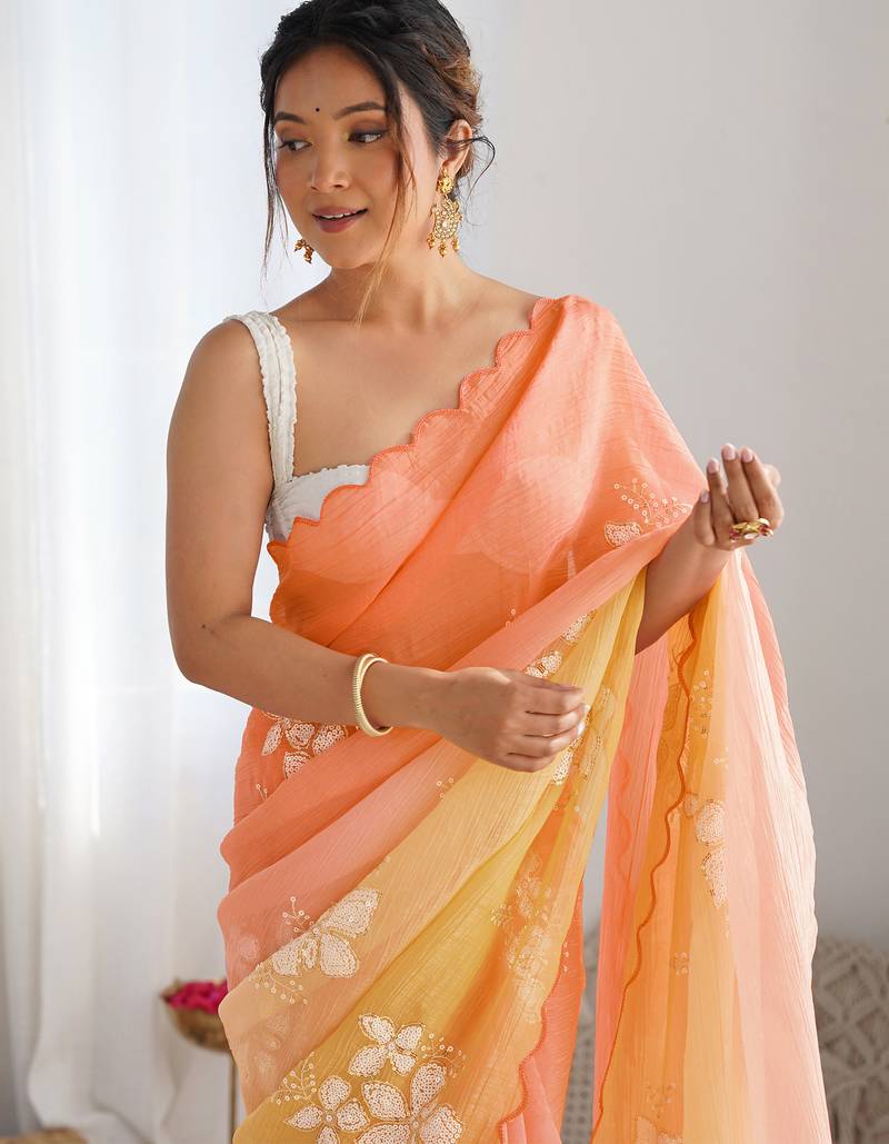 Product Name | Crush Embroidered Saree With Sequins Work Unstitched Blouse | |