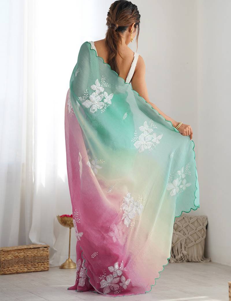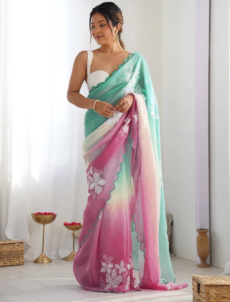 Product Name Crush Embroidered Saree With Sequins Work Unstitched Blouse