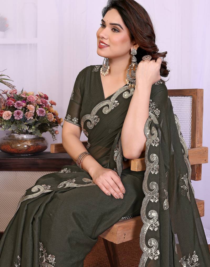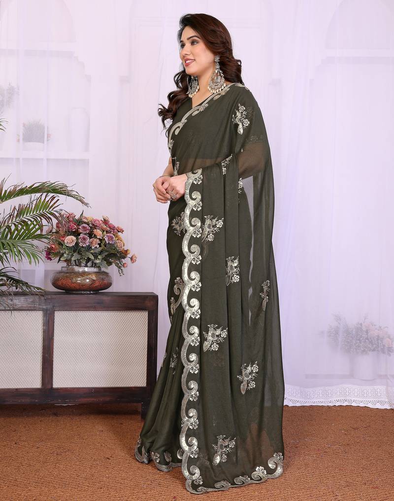 Mehendi saree look rich heavy star georgette silk saree with sequins embroidery work saree and blouse