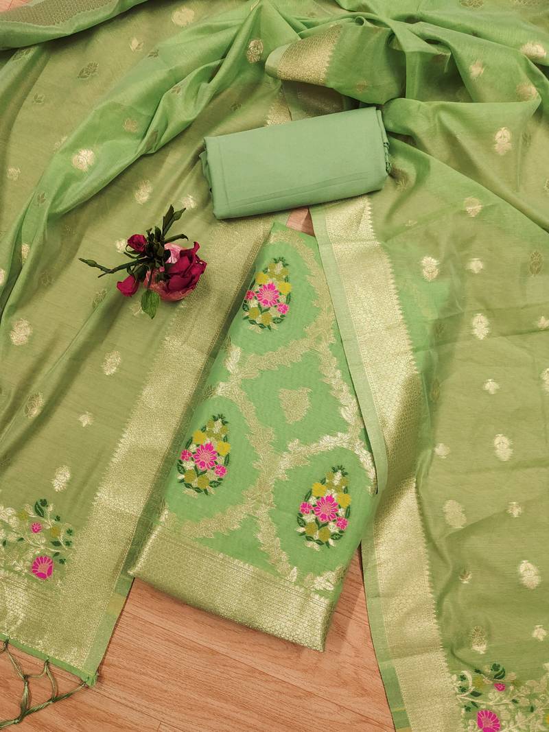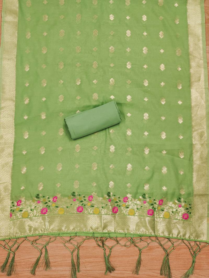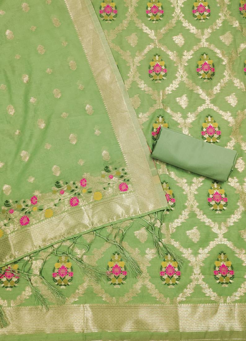 | Product Name | Light Green Zari Woven Chanderi Silk Dress Materials | |
