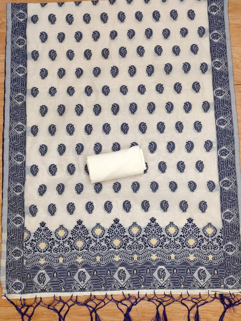 Navy blue zari woven banarasi dress materials unstitched