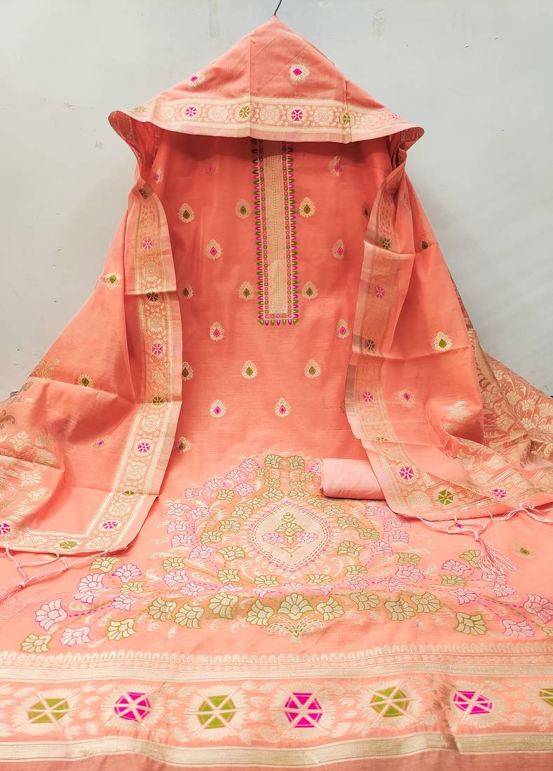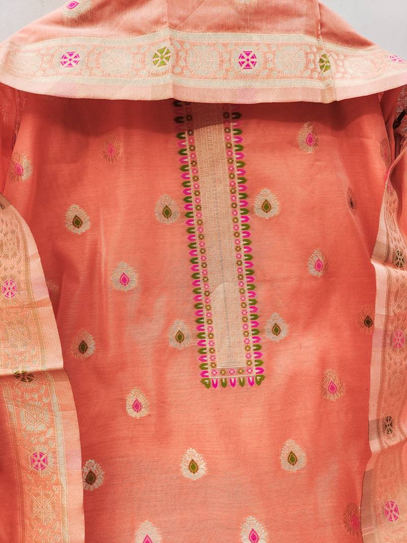 | Product Name | Peach Zari Woven Chanderi Silk Dress Materials | |