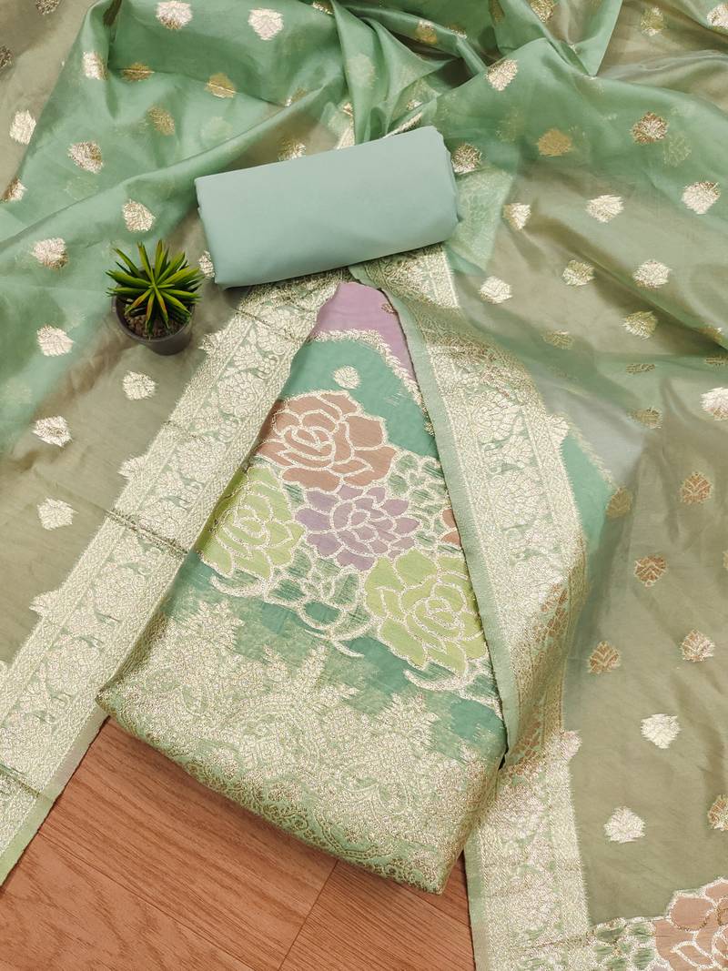 | Product Name | Green Zari Woven Banarasi Dress Materials | |