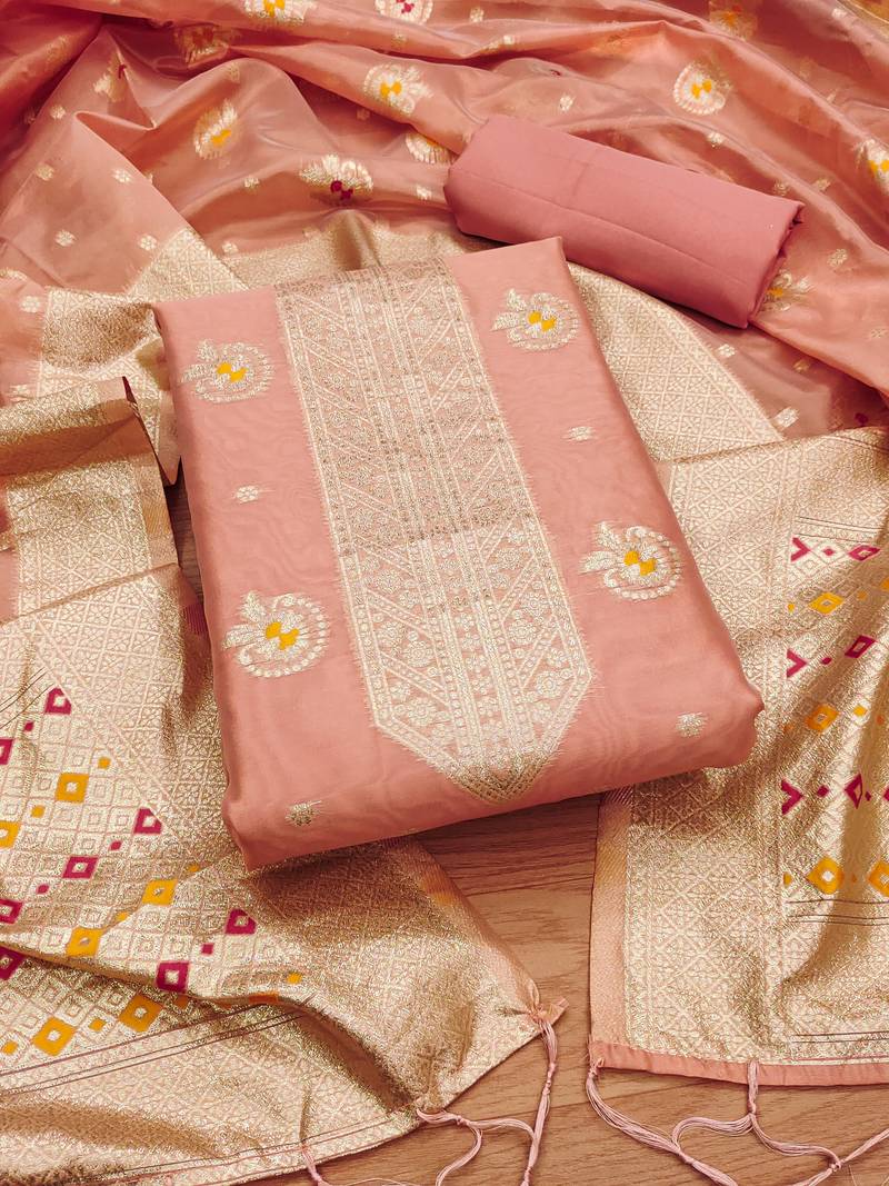 | Product Name | Peach Zari Woven Banarasi Dress Materials | |