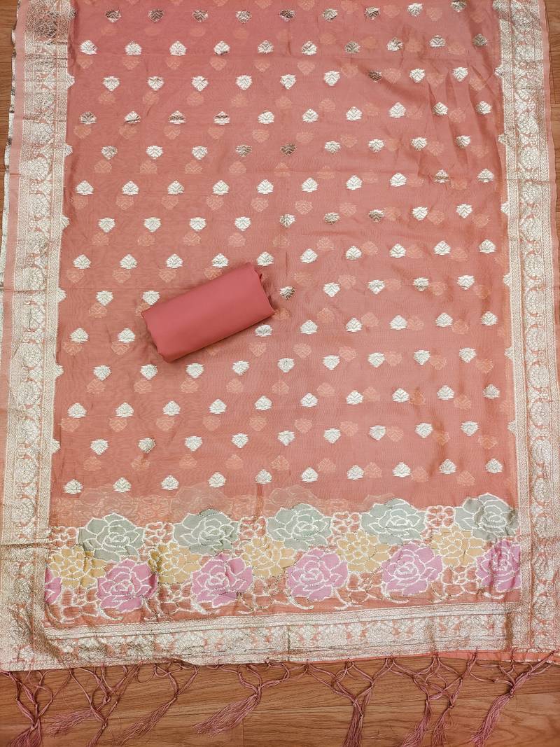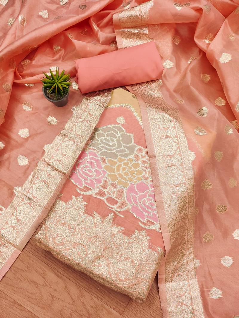 | Product Name | Peach Zari Woven Banarasi Dress Materials | |