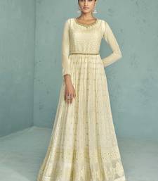 Amazing off white colour dress for party wear in georgette fabric semi stitched