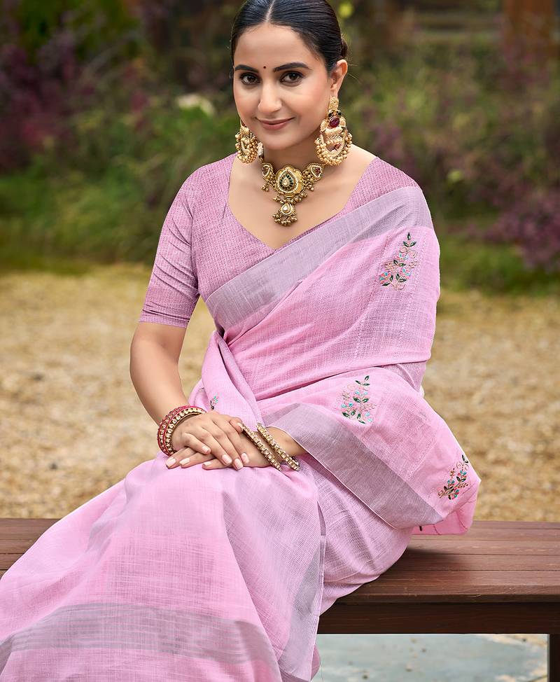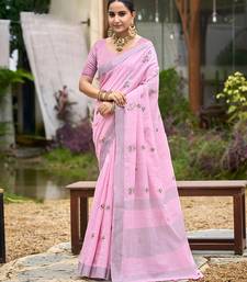 Baby pink color beautiful linen fabric sophisticated ethnic saree